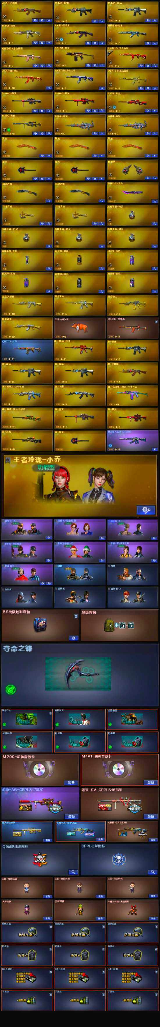 【英雄级武器】:幻灵之锋*2,QBZ03-金色蔷薇,M4A1-雷神,M4A1-黑龙,M4A1-死神,加特林-炼狱*2,AK47-火麒麟,AK47-黑武士,Barrett-毁灭,Barrett-极光,AWM-裁决,M200-幻神,AK47-B-常胜将军,M4A1-赤狱骑士,麒麟刺,擎天*2,屠龙*3