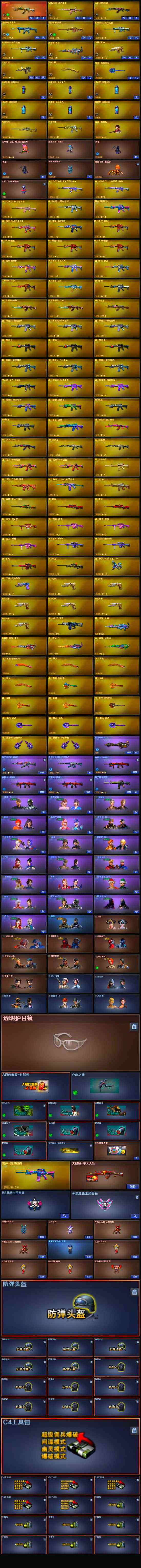 【英雄级武器】:擎天-竞技荣光,高爆手雷-竞技荣光*2,烟雾弹-竞技荣光*2,闪光弹-竞技荣光*2,QBZ03-金色蔷薇,白虎-电玩蓝兔,无影-神兵利器,加特林-炼狱,Barrett-朱雀,AK-47-猩红传说*4,沙鹰-天神
