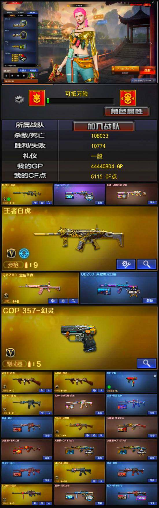 【热门武器】:QBZ03-金色蔷薇,M200-幻神,死亡之眼,汤姆逊-烈龙*2,羊驼玩偶*2,COP-白鲨,COP 357-幻灵,沙鹰-修罗*6