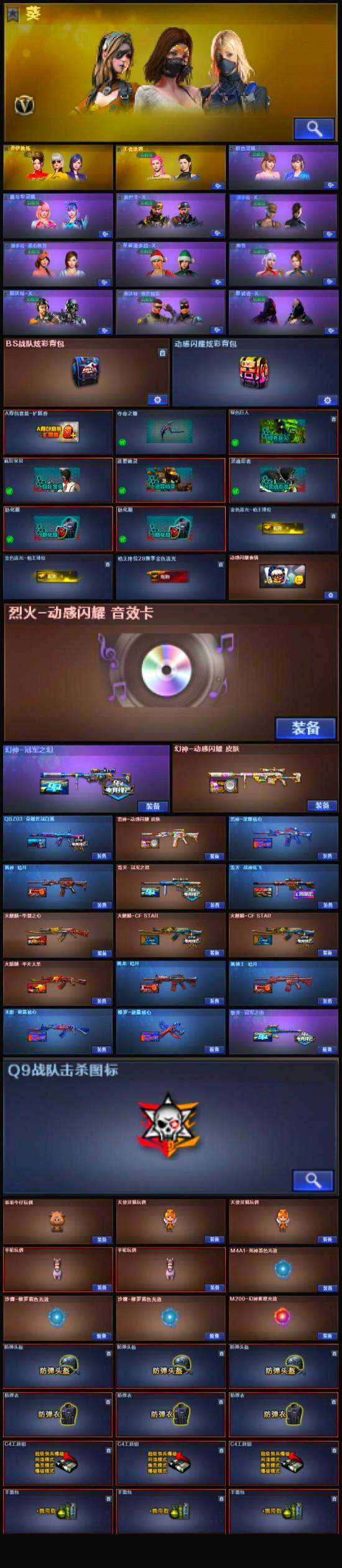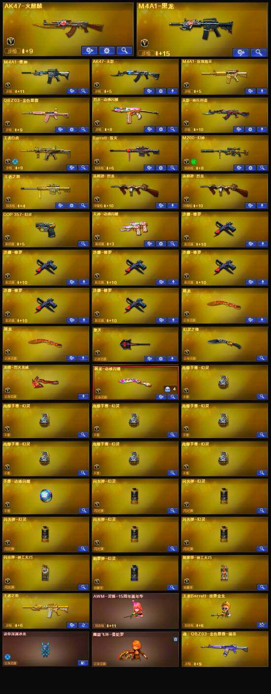 【英雄级武器】:COP 357-幻灵,幻灵之锋,烈火-动感闪耀,天神-动感闪耀,屠龙-动感闪耀,手雷-动感闪耀,QBZ03-金色蔷薇,无影-神兵利器,M4A1-雷神,M4A1-黑龙,M4A1-玫瑰精灵,汤姆逊-烈龙*2,AK47-无影,AK47-火麒麟,Barrett-毁灭,M200-幻神,沙鹰-修罗*6,擎天,屠龙*2