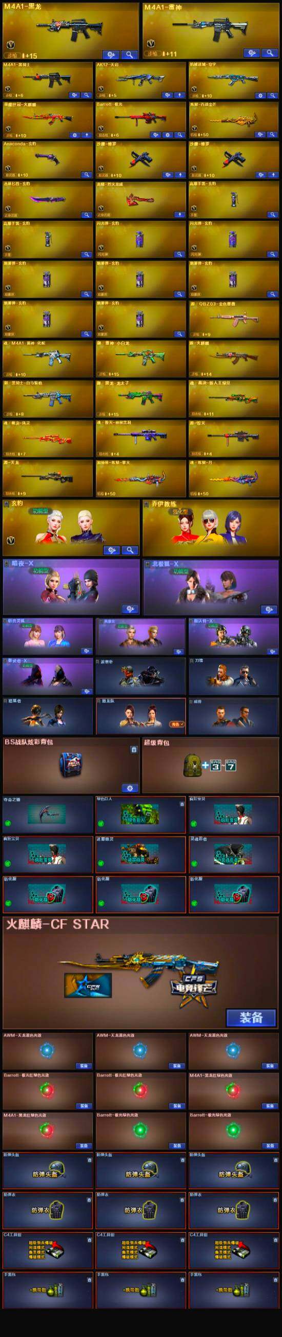 【英雄级武器】:荣耀世冠-火麒麟,M4A1-雷神,M4A1-黑龙,M4A1-黑骑士,AK12-天启,Barrett-极光,沙鹰-修罗*2