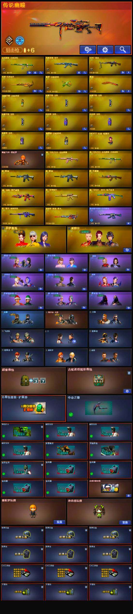 【热门武器】:传说幽瞳,金色蔷薇-古蛇迷踪,修罗-古蛇迷踪,RPK-盘龙