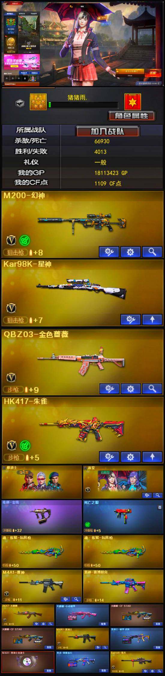 【热门武器】:QBZ03-金色蔷薇,HK417-朱雀,M200-幻神,死亡之眼,Kar98K-星神,M4A1-黑骑士