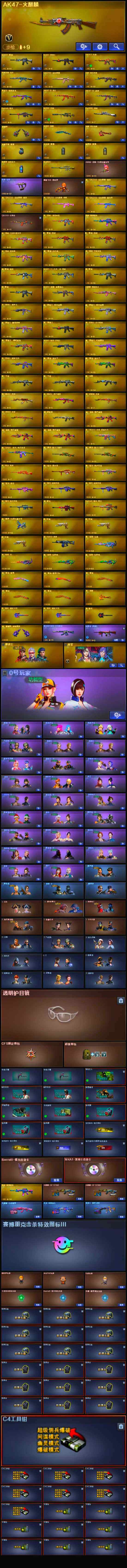 【英雄级武器】:烟雾弹-竞技荣光,QBZ03-金色蔷薇,HK417-朱雀,无影-神兵利器,M4A1-雷神,M4A1-黑骑士,AK47-火麒麟,Barrett-毁灭,Kar98K-星神,M200-幻神,黑武士-锦绣游龙,AK-47-猩红传说,AK47-B-战神,麒麟刺