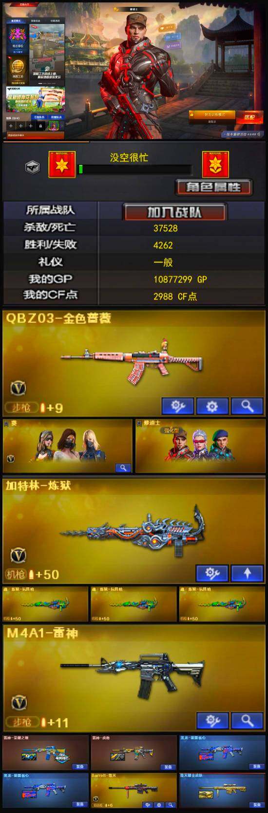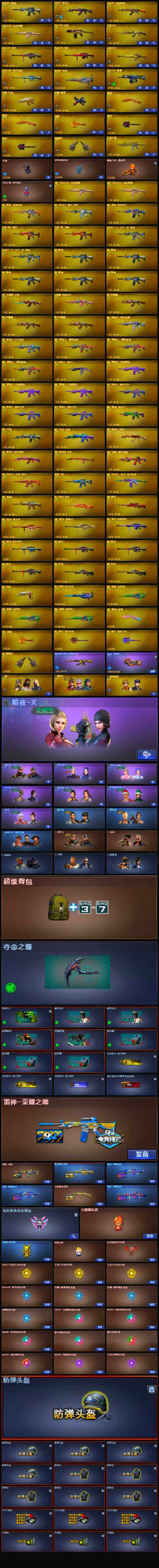 【英雄级武器】:QBZ03-金色蔷薇,M4A1-雷神,加特林-炼狱,AK47-黑武士,Barrett-毁灭,Barrett-极光,AK47-机械迷城,AA-12-雷霆,AK-47-猩红传说,沙鹰-天神,沙鹰-修罗,麒麟刺,擎天*2,龙啸,屠龙*2