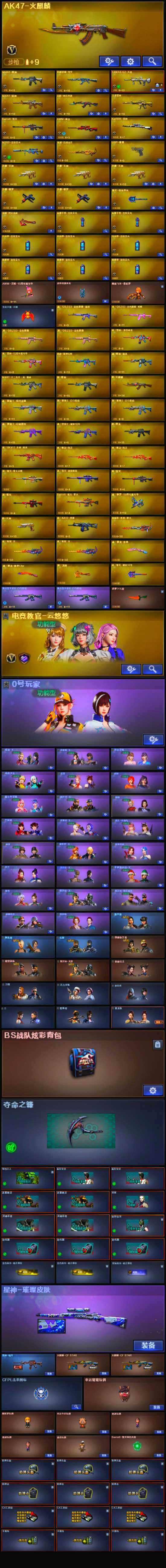 - [10149722]实名: 可修改 时装数: 358 载具数: 2 枪械数: 150 战备数: 98 热门装扮: 羲和光序,罗征,荧海星豚 载具: 宝马M4(圣保罗黄),霜龙神御(云雾蓝) 稀有枪皮: M416五爪金龙,Kar98K-巳巳如意,SCAR-L金蛇镇世,AUG-暖羊咩咩,MG-36-幻彩电音
