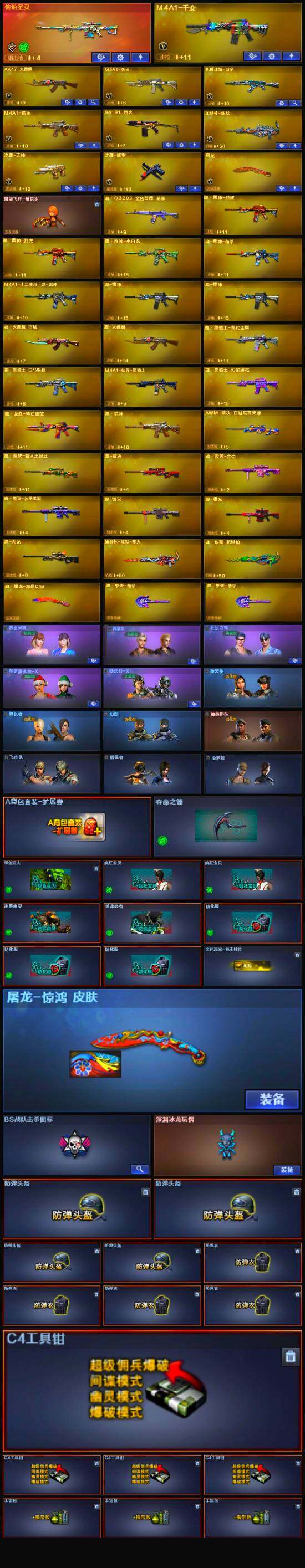 - [11851963]可二次 可修改实名 V5 2王者武器 73英雄武器 1英雄角色 112万化 枪王 武器:王者之翎,TAC-慈,81式-光明之神,CZ75-策,王者之锋,M4A1-游骑兵,AK47-木兰,M4A1-死神,AK47-火麒麟,M4A1-雷神,AK47-燎天净火,QBZ03-金色蔷薇,QBZ03-死神,KSG-黑骑士,AK47-猩红传说,AK47-华夏传说,AK47-血武士,M4A1-海骑士,M4A1-心动次元,M4A1-夏清觉醒,M4A1-运输船,M4A1-千变,9A91-天神,CBJ-MS-毒蜂,AA12-火药,地狱烈炎,加特林-堡垒,AK47-轮回,MK47-鼓龙,M14EBR-拂影,HK416-极光,M4A1-太白诗仙,沙鹰-修罗,沙鹰-幻兽,USP-机械迷城,气手枪-血月,QSZ92-华夏传说,沙鹰-宇航兔兔,改装GLOCK-木兰,QBB95-再战涿鹿,尼泊尔-机械纪元,马来剑-毁灭,屠龙,唐刀-大唐荣耀,唐刀-华夏传说,蝴蝶刀-天神,高爆手雷-雷暴,燃烧弹-游骑兵,烟雾弹-游骑兵,闪光弹-游骑兵,死神手雷,死神闪光弹,死神烟雾弹,手雷-云海游龙,CZS2-仲康,M14EBR-葫芦山庄,HK417-朱雀,马来剑-耀金伯爵,炽芒蝶刀