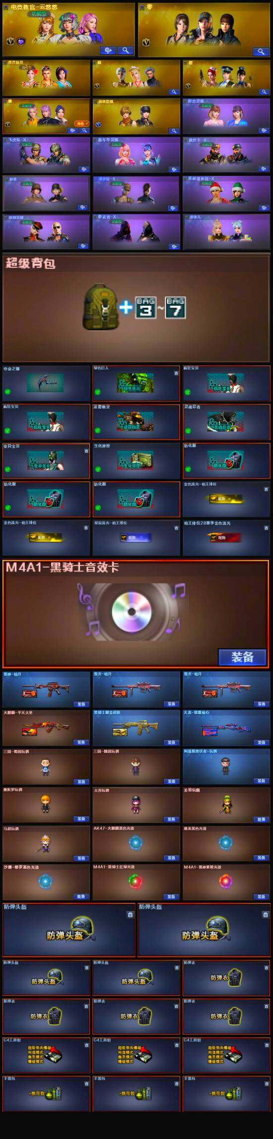 【英雄级武器】:高爆手雷-竞技荣光*3,烟雾弹-竞技荣光,闪光弹-竞技荣光*2,麒麟刺-堕天神,QBZ03-金色蔷薇,M4A1-青龙,M4A1-雷神,M4A1-玫瑰精灵,M4A1-黑骑士*2,M4A1-死神,RPK-盘龙,加特林-炼狱,汤姆逊-烈龙*6,AK47-火麒麟,AK12-天启,AWM-天龙,Barrett-毁灭*2,Barrett-极光*2,AWM-裁决,Barrett-朱雀,M4A1-千变,黑武士-锦绣游龙,黑骑士-海王,AK-47-猩红传说,沙鹰-天神*3,沙鹰-修罗*5,麒麟刺,龙啸,屠龙,龙啸-热带奇洋