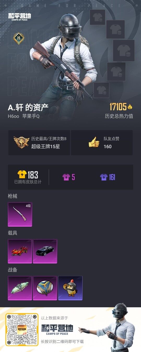 - [12038938]【暑期末清货/特价急出/永久包赔】:苹果 手Q-1红装-6粉装-9特效枪-3载具-6.3w热力值-2印记-130套装-183枪皮【热门品类】:套装-S1赛事,M416-星际漫游,套装-忍者信条【角色神装等级】:最终圣卫者-帕修斯(二级)【稀有载具】:阿斯顿马丁DBS(红),最终圣卫者摩托车,护世瑞兽【特效枪等级】:SCAR-L-锦绣绵绵(五级),M416-心之恋语(七级),AUG-星之彼岸(七级),UMP45-量子极限(五级),Vector-最终圣卫者(二级),Kar98K-巳巳如意(五级),Kar98K-圣域龙灵(三级),Mk14-甜梦熊击(五级),DP-28-豹影疾电(四级)【优质套装】:粉装-甜蜜誓约,粉装-极致幻想,粉装-星之彼岸,角色-白兰星,角色-超弦星,角色-樱桃泡泡【优质飞行器】:深海曼妙飞行器,炫紫旋律飞行器,万象金身飞行器,终晖之翼飞行器,宁雨蝶飞行器