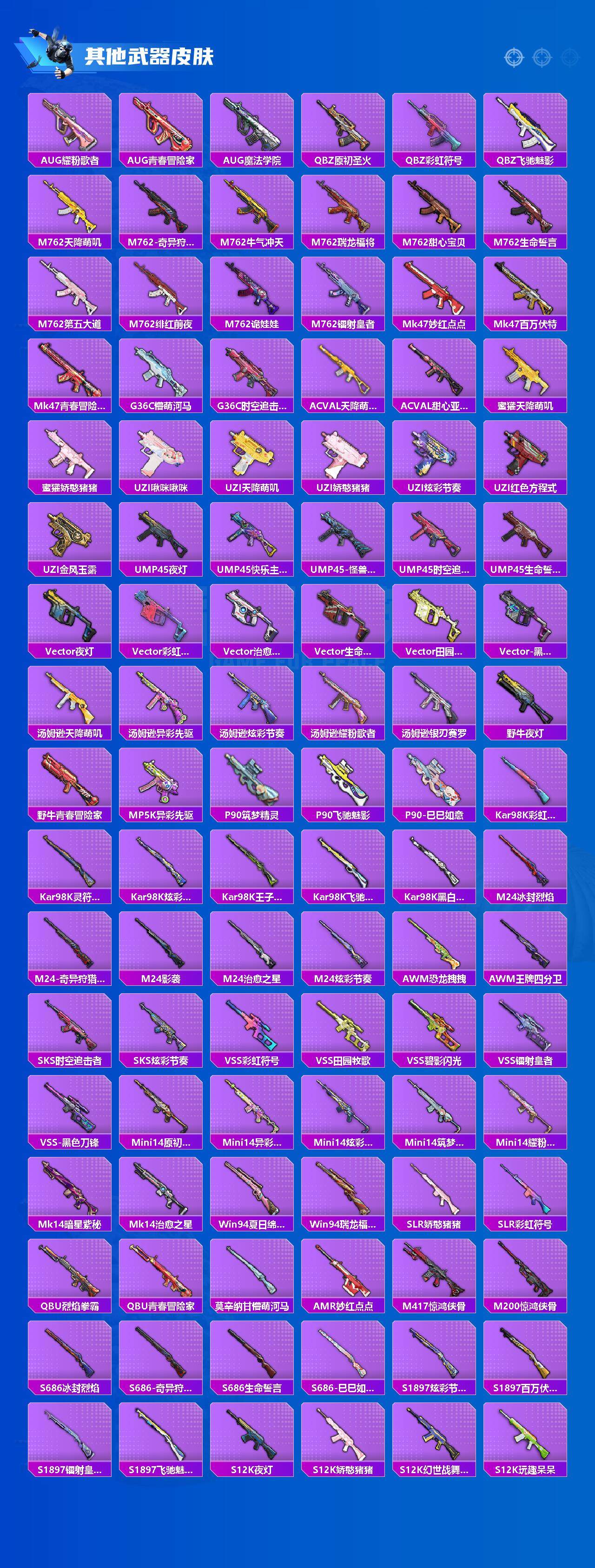 AKM-梦之光华,SCAR-L-童趣迷兔,M416-心之恋语,M416-风花雪月,Kar98K-巳巳如意