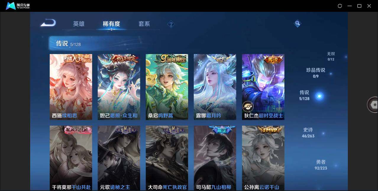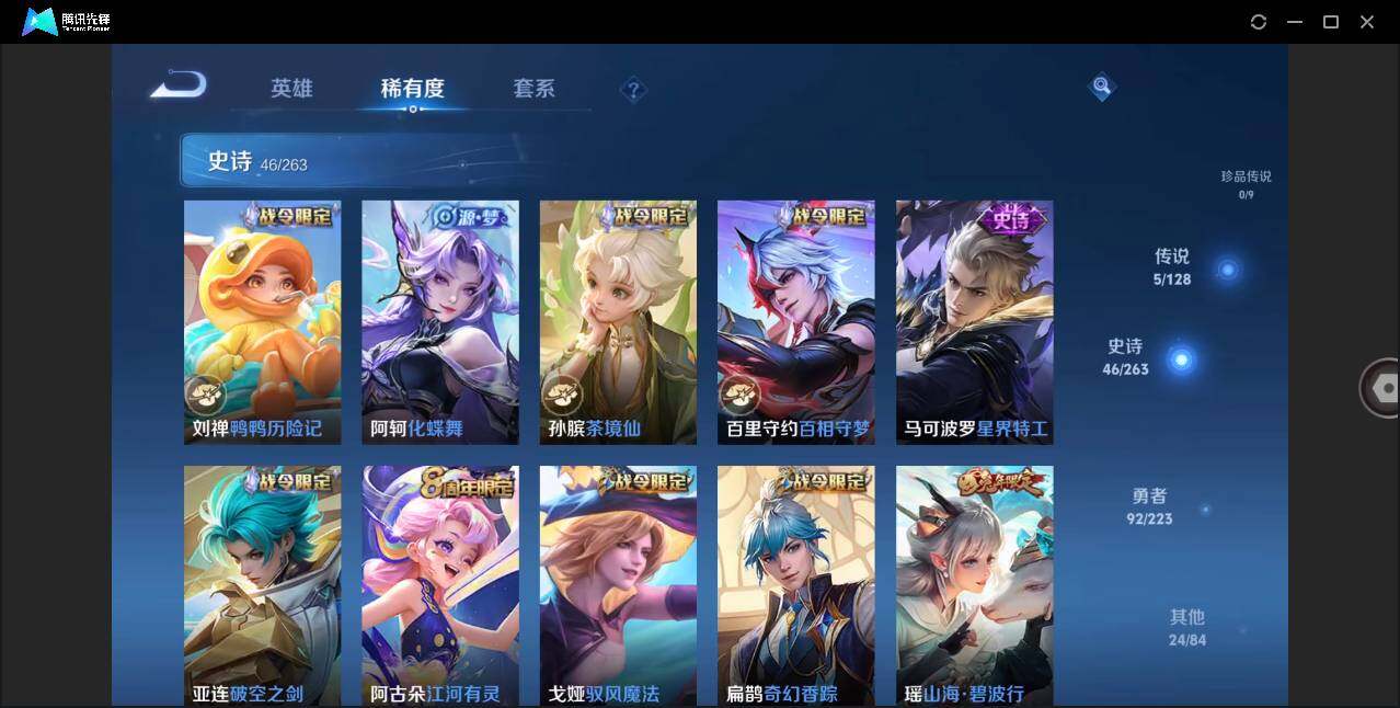 - [12279531]V10 5典藏 3无双 4珍品传说 58传说 125英雄 442皮肤 可修改实名 优质装备:鸣剑·曳影,全息碎影(猴子典藏),九霄神辉(木兰典藏),赤影疾锋,弑枪猎影(韩信典藏),真我赫兹(瑶)(瑶无双),小乔时之魔女(小乔无双),器灵·螭龙剑,江户川柯南,怪盗基德,朽木白哉,黄金狮子座,黄金射手座,云鹰飞将(小将军),绛天战甲(鸡嘴战神),黄金白羊座,猫影幻舞,久胜战神,炽阳神光,一念神魔,云霓雀翎,末日机甲-孙尚香(绿蚂蚱),地狱火,仲夏夜之梦(大飞蛾),音你心动-小乔,零号·赤焰,海洋之心,地狱之眼,飞鸢探春,音你心动-周瑜,胖达荣荣,乞巧织情,时之恋人-刘备(电焊工),游龙清影(小青龙),淬星耀世,超时空战士-狄仁杰,花朝如约(花篮子),无双飞将,音你闪耀(rap皮),碎云,画中仙,浮生妄,记忆之芯(机甲兔),惊梅引,鲁班七号-时之奇旅,霜月吟,澜逐花归海,艾琳觅芳踪,玄雷天君,千劫归真,涂山容容 珍品传说:时之奇旅-孙策 传说皮:典韦战鼓燎原,星之鸣奏,幻光神枪 珍宝阁皮:妄想食味,蔷薇恋人 限定皮:愿照·九州拓(澜年限),愿照·福禄聚(蔡文姬年限),愿照·岁时盈(虞姬年限),愿照·山河定(司空震年限),愿照·众生和(妲己年限),愿照·千秋盛(女娲年限),逐霄战戟,鸣野蒿,至尊宝,白虎志(电光耗子),太华(伽罗年限),傲雪梅枪,绯月行,时之彼端,白鹤梁神女,时雨天司(水龙头),神威(电光马子),遇见飞天,高山流水,诗剑行,怒海麟威,五谷丰年,青龙志(铠年限),冰锋战神,武圣,游园惊梦,梁祝,御风骁将(吕布年限),逐梦之翼,逐梦之音,李小龙,逐梦之影,朱雀志(守约年限),如梦令-后羿,霸王别姬-项羽,霸王别姬-虞姬,默契交锋-花木兰,孙行者,大圣娶亲,青春决赛季,冰霜恋舞曲,蜜橘之夏,深海之息(深海大菠萝),山海·玄木吟(马可年限) 史诗皮:鸭鸭历险记-刘禅,飞车小橘子,器灵·浮梦炉,糖绘人间,瑰影绮梦,化蝶舞,灵蛊蚀心,星界战将,谪仙醉月,龙之律动,石田雨龙,百相守梦-周瑜,茶境仙,怒海争锋,曹操夜都魔契,百相守梦-百里守约,星界特工,百相守梦-黄忠,遇见神鹿,紫霞仙子,苍穹之光,电玩小子(小书包),白龙吟,黄金分割率,特工魅影,千年之狐,江河有灵,匿光侦查者,浮梦罗烟,魅语,无限星赏官,冰冠公主,青蛇,偶像歌手,白蛇,暗夜猫娘,龙骑士(小龙虾),末日