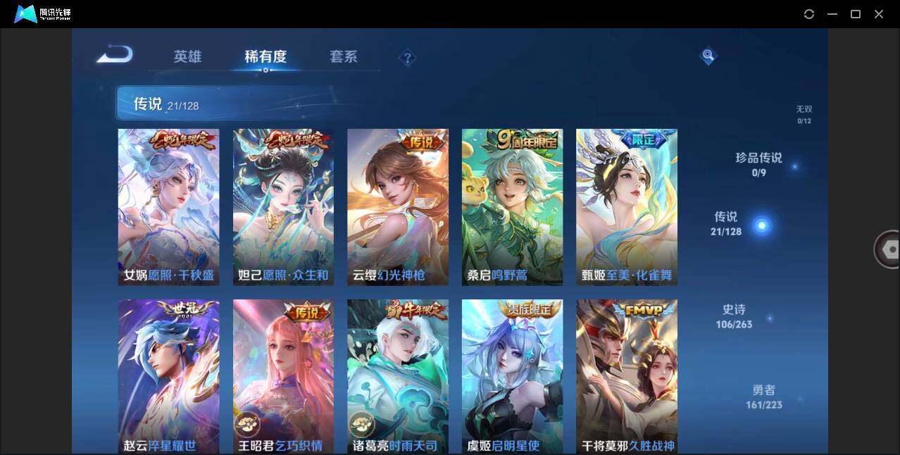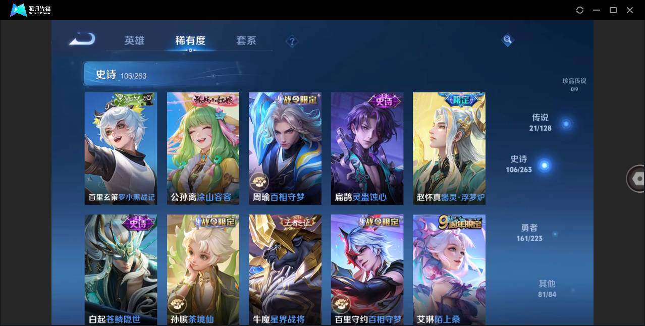 - PX_2093825-贵族8/皮肤250/典藏1/传说7/史诗68/英雄120/银白咏叹调/蔷薇恋人/女武神/特工战影/黄金射手座/零号赤焰/启明星使/挚爱之约/无双飞将/山海炽霜斩/山海苍雷引/狄仁杰阴阳师/赵云皇家上将/引擎之心/墨子神迹守卫/蔷薇恋人/狮舞东方/高渐离死亡摇滚/钟无艳超时空战士/白起夜都怪侠/芈月幻夜卜梦/御风骁将/赤莲之焰/云间偶戏/元歌无心/朔风刀/甄姬落雪兰心/暗影游猎