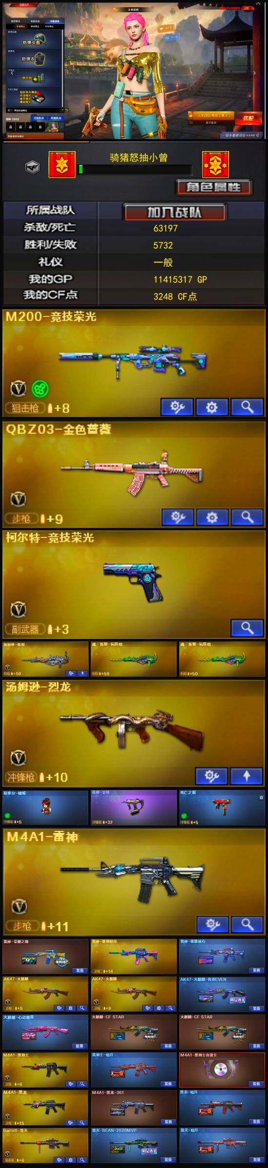 【热门武器】:QBZ03-金色蔷薇,M200-竞技荣光,死亡之眼,M4A1-黑骑士,汤姆逊-烈龙,加特林-炼狱,斯泰尔-蝴蝶,沙鹰-修罗