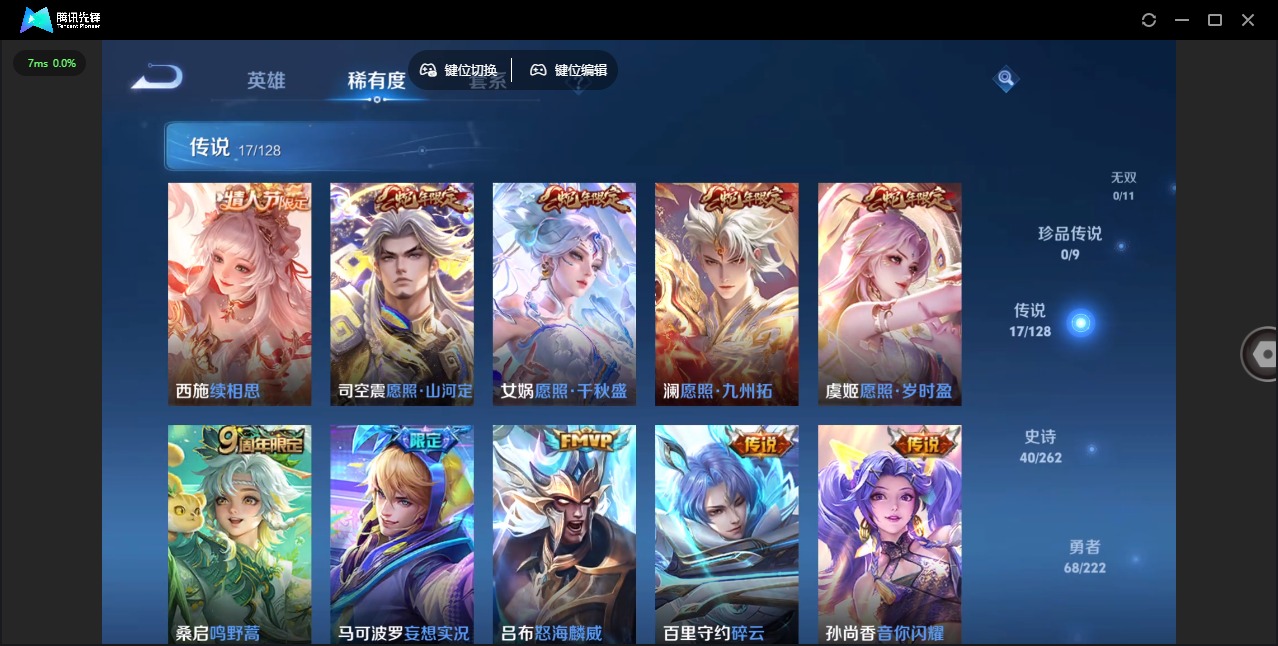- [11604327]V8 1典藏 1珍品传说 16传说 123英雄 215皮肤 可修改实名 优质装备:鸣剑·曳影,江户川柯南,黄金射手座,冠军飞将,猫影幻舞,末日机甲-孙尚香(绿蚂蚱),地狱之眼,胖达荣荣,超时空战士-狄仁杰,妄想实况,黄金天蝎座 传说皮:乘龙·淬吴钩(孙策年限) 珍宝阁皮:胡桃夹子,万物之道 限定皮:愿照·九州拓(澜年限),逐霄战戟,鸣野蒿,至尊宝,傲雪梅枪,遇见飞天,诗剑行,齐天大圣,降魔,五谷丰年,冰锋战神,岱宗(典韦年限),引擎之心,玉兔公主,深海之息(深海大菠萝),山海·玄木吟(马可年限) 史诗皮:器灵·浮梦炉,狼魂孤将,星界战将,茶境仙,海诺心动手记,蒙犽顽岩魄,怒海争锋,蔬乡物语(鲁班七号),遇见神鹿,黄金分割率,特工魅影,千年之狐,电玩·爆裂旋风,江河有灵,高渐离燃音魔法,蒙恬荣光圣徽,偶像歌手,暗夜猫娘,末日机甲-吕布,节奏热浪,女仆咖啡,水果甜心,天才门将,星夜王子,心灵骇客,功夫厨神,暗隐猎兽者,鬼剑武藏,心灵战警,舞动绿茵,地狱岩魂,纤云弄巧,缤纷独角兽,乘风破浪,逐浪之夏,月团寄思,水晶猎龙者,曙光守护者,箭羽风息,金属风暴,原初追逐者,圣诞狂欢,圣诞恋歌,鹰眼统帅,暗夜贵公子,无心,未来纪元-赵云