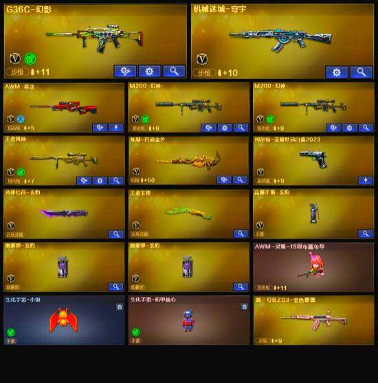 【英雄级武器】:G36C-幻影,AWM-裁决,M200-幻神*2,M4A1-赤狱骑士