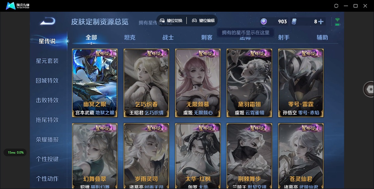 宫本武藏鬼剑武藏,兰陵王暗隐猎兽者,白起星夜王子,百里玄策原初追逐者,李元芳逐浪之夏,蔡文姬舞动绿茵,吕布末日机甲,露娜紫霞仙子,司马懿暗渊魔法,刘禅天才门将