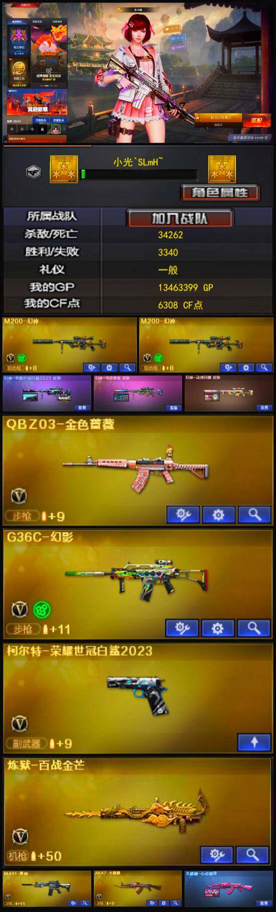 【热门武器】:G36C-幻影,QBZ03-金色蔷薇,M200-幻神*2,柯尔特-荣耀世冠白鲨2023