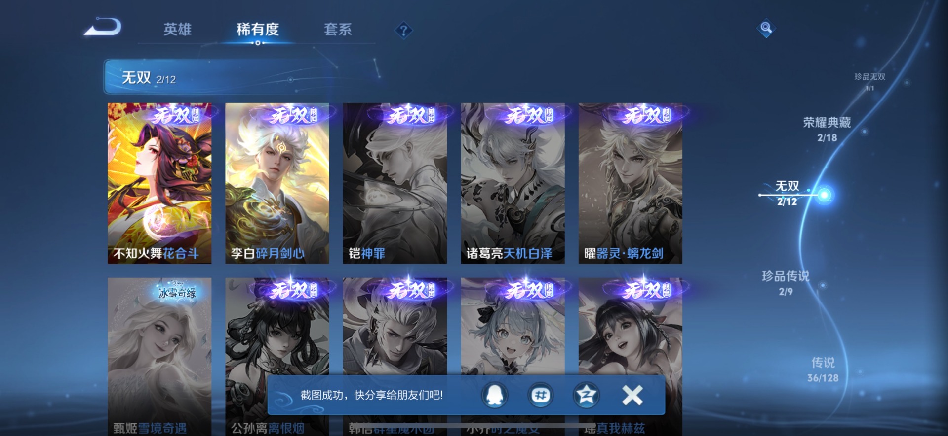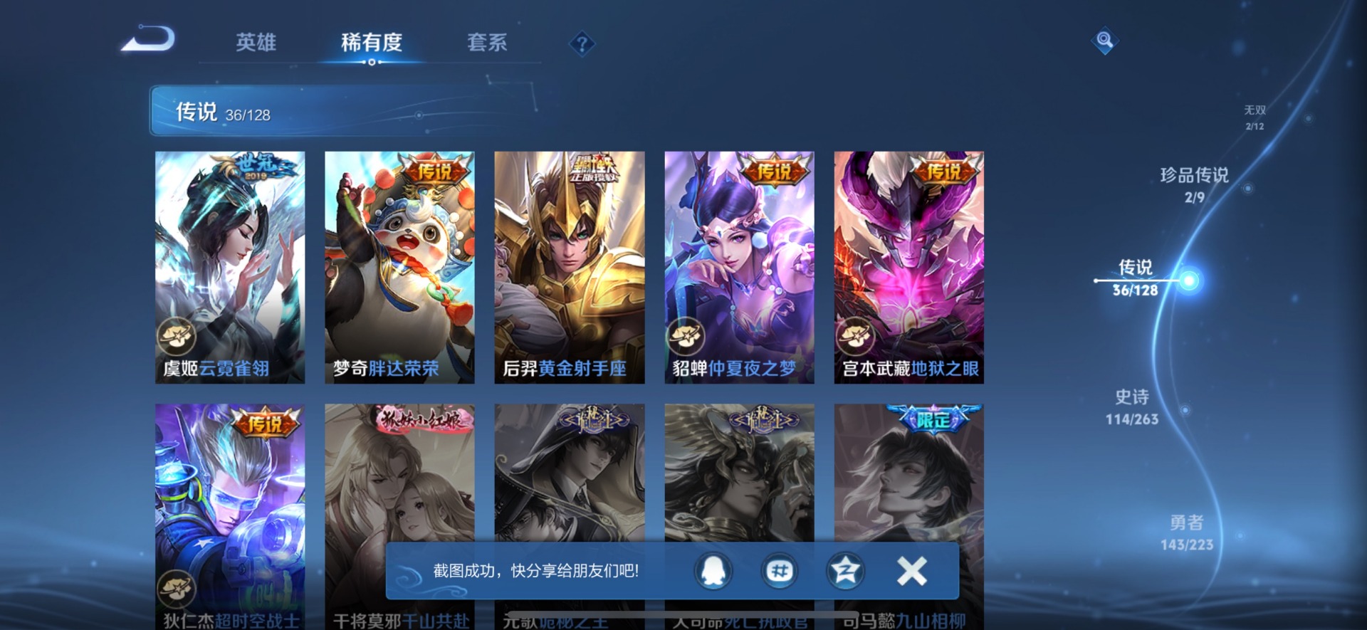 - [11883510]V8 2典藏 2无双 3珍品传说 32传说 116英雄 173皮肤 可修改实名 优质装备:天鹅之梦(小乔典藏),小乔时之魔女(小乔无双),离恨烟(公孙离无双),拾光映像(瑶典藏),器灵·落星盏,酷洛米之心,大耳狗之梦,久胜战神,炽阳神光,时之恋人-刘备(电焊工),游龙清影(小青龙),超时空战士-狄仁杰,碎云,山海·琳琅生(小乔年限),炽翼辉光(娃娃菜牛角包),百相守梦(张飞),妄想奇谈,永恒水手月亮,小动物乐团,霜月吟,金乌负日 传说皮:乘龙·问璇玑(孙尚香年限),乘龙·铭钟鼎(赵云年限),乘龙·淬吴钩(孙策年限),貂蝉曦玄引,续相思,星之鸣奏 限定皮:愿照·九州拓(澜年限),愿照·福禄聚(蔡文姬年限),愿照·岁时盈(虞姬年限),愿照·山河定(司空震年限),愿照·众生和(妲己年限),愿照·千秋盛(女娲年限),映山客,鸣野蒿,星穹之声,绯月行,魔法小厨娘,至美·乘鲤谣,至美·化雀舞,遇见飞天,奇迹圣诞 史诗皮:鸭鸭历险记-刘禅,化蝶舞,星界战将,石田雨龙,百相守梦-周瑜,幻珠鲛人,战舞者,涂山红红,蔬乡物语(鲁班七号),乘龙·聚宝船(安琪拉年限),乘龙·忆丹青(大乔年限),百相守梦-黄忠,遇见神鹿,紫霞仙子,黄金分割率,永昼,江河有灵,浮梦罗烟,百解令(蒙犽),无限星赏官,冰冠公主,青蛇,偶像歌手,晚萤,电玩·兔顽号,暗夜猫娘,银翎春语,猫狗日记-大乔,女仆咖啡,水果甜心,心灵骇客,鬼剑武藏,乐园奇幻夜,诗语江南,拒霜思,缤纷独角兽,逐浪之夏,月团寄思,水晶猎龙者,原初追逐者,鹰眼统帅,暗夜贵公子,魅力维加斯,滕王阁序