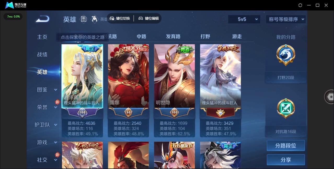 - [11970536]V7 2典藏 9传说 123英雄 202皮肤 可修改实名 优质装备:鸣剑·曳影,银白咏叹调(倪克斯侍卫),云鹰飞将(小将军),炽阳神光,一念神魔,末日机甲-孙策,挚爱之约,无双飞将,诡秘之主,涂山容容 珍宝阁皮:妄想食味,玩趣恶龙 限定皮:愿照·九州拓(澜年限),鸣野蒿,至尊宝,高山流水,圣诞老人,猪悟能,百木心枪 史诗皮:赞萌露比,糖绘人间,化蝶舞,灵蛊蚀心,星界战将,谪仙醉月,龙之律动,藏狐·褐绒,百相守梦-周瑜,茶境仙,撼地雄心,破空之剑,战舞者,百相守梦-黄忠,黄金分割率,千年之狐,永昼,冰冠公主,偶像歌手,暗夜猫娘,猫狗日记-孙策,乱世虎臣,节奏热浪,修罗,功夫厨神,德古拉伯爵,幽灵船长,鬼剑武藏,心灵战警,乘风破浪,水晶猎龙者,曙光守护者,原初追逐者,圣诞狂欢,鹰眼统帅,魅力维加斯,黎明之约,赏金猎手,无心,未来纪元-赵云