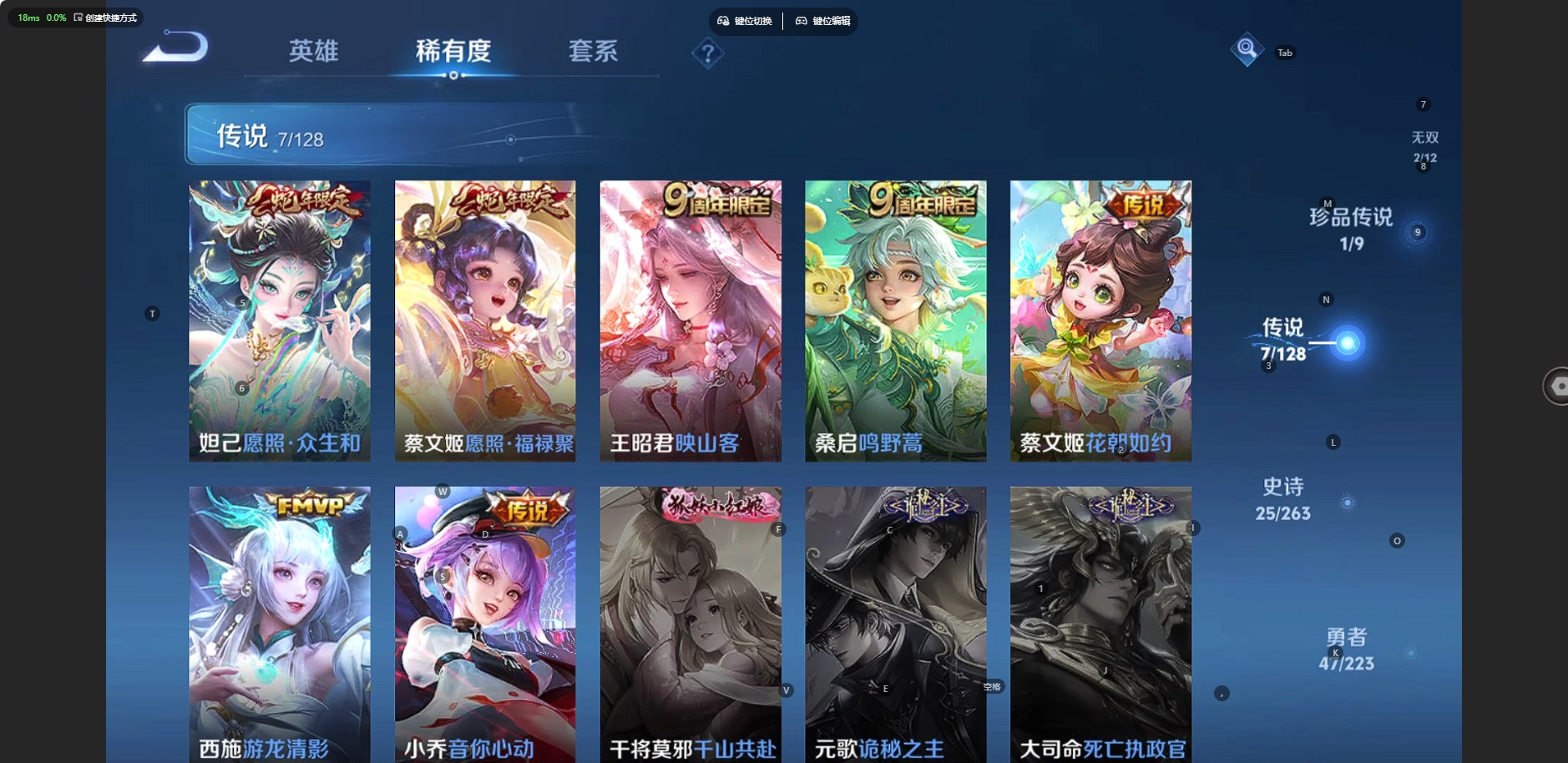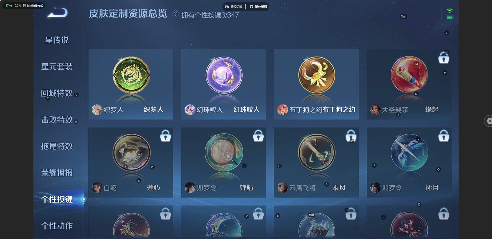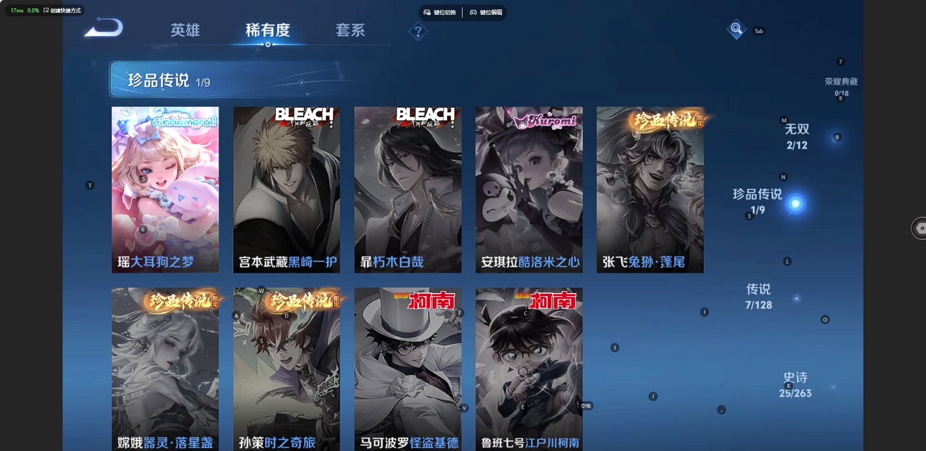 大乔白蛇,宫本武藏鬼剑武藏,兰陵王暗隐猎兽者,阿轲节奏热浪,西施诗语江南,小乔青蛇,赵怀真器灵·浮梦炉,蔡文姬舞动绿茵,瑶遇见神鹿,弈星滕王阁序,司马懿暗渊魔法