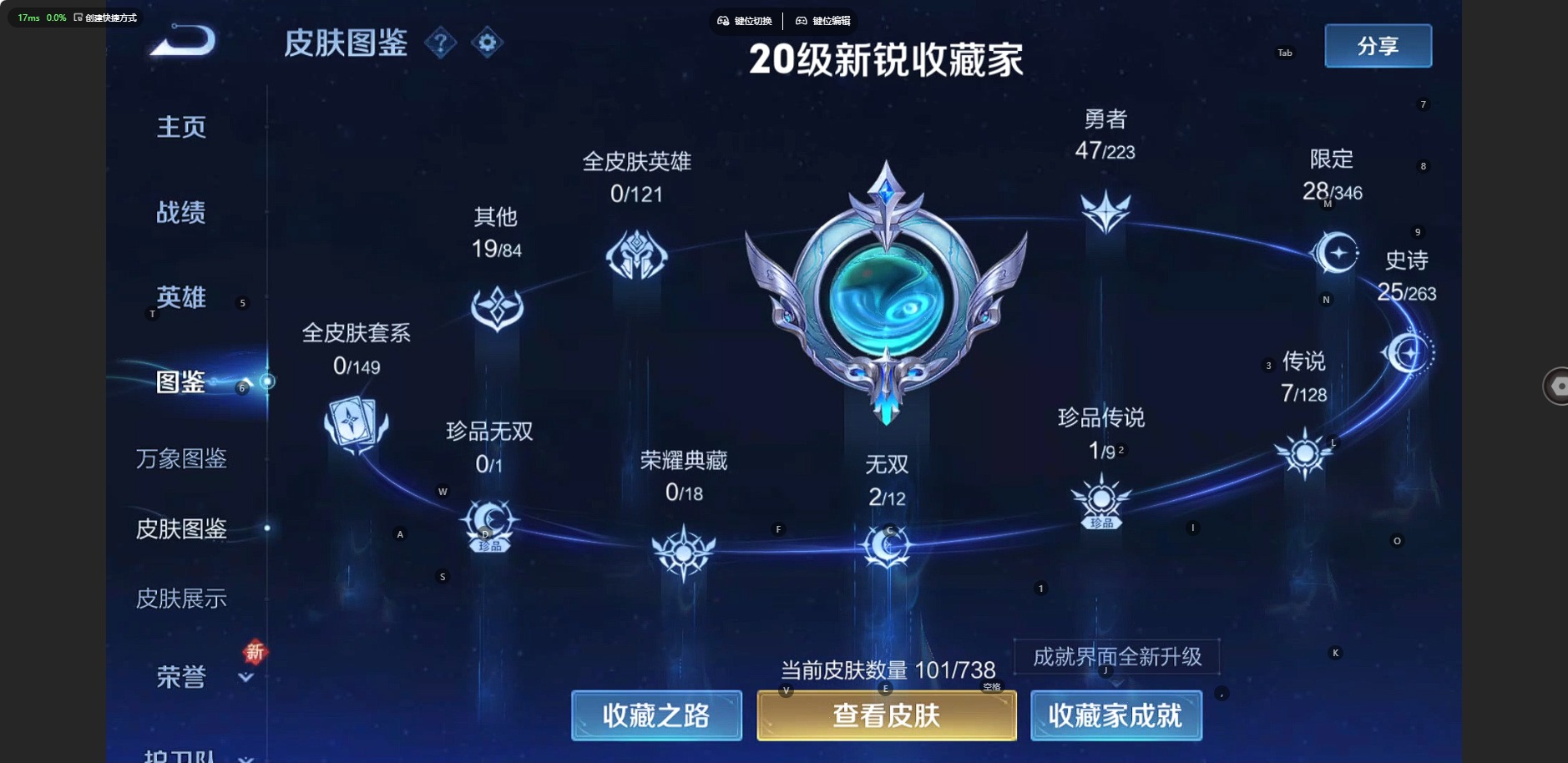 - PX_2095604-安卓Q 【可二次】 英雄数量:125 皮肤数量:238 贵族等级:贵族V8 【星传说 金色仲夏夜】荣耀典藏1 珍品传说2 传说品质20 史诗品质65赤影疾锋 怪盗基德 大耳狗之梦 乞巧织情 仲夏夜之梦 游龙清影 音你心动女 记忆之芯 云霓雀翎 一念神魔 淬星耀世 山海苍雷引 久胜战神 炽阳神光 末日机甲女 浮生妄 音你心动男 启明星使 黄金射手座 地狱之眼 黄金狮子座 胖达荣