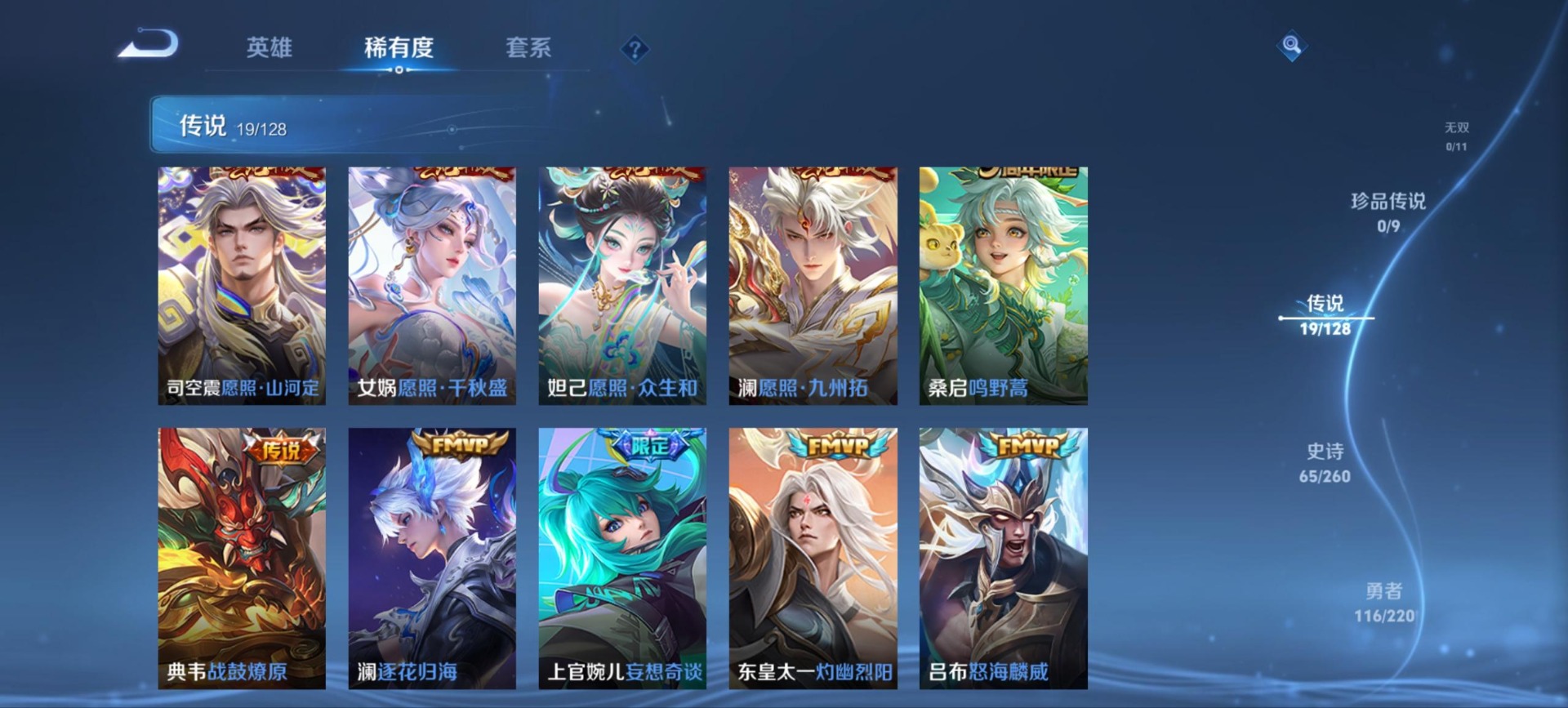 司空震愿照·山河定,裴擒虎李小龙,李白诗剑行,马可波罗山海·玄木吟,桑启鸣野蒿,猪八戒猪悟能,女娲愿照·千秋盛,孙悟空至尊宝,妲己愿照·众生和,韩信傲雪梅枪,澜愿照·九州拓