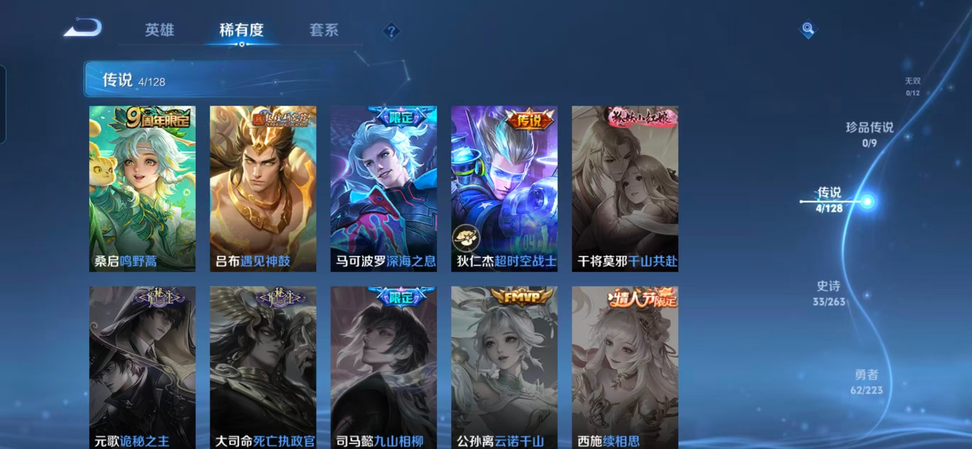 - [11518850]V7 1典藏 6传说 124英雄 285皮肤 可修改实名 优质装备:鸣剑·曳影,冠军飞将,炽阳神光,一念神魔,地狱火,淬星耀世,超时空战士-狄仁杰 珍宝阁皮:蔷薇恋人,玩趣恶龙 限定皮:神威(电光马子),遇见飞天,高山流水,五谷丰年,冰锋战神,梁祝,逐梦之星,李小龙,逐梦之影,朱雀志(守约年限),孙行者 史诗皮:星界战将,苍穹之光,电玩小子(小书包),白龙吟,黄金分割率,千年之狐,江河有灵,蒙恬荣光圣徽,偶像歌手,魅语,电玩·爆裂旋风,暗夜猫娘,乱世虎臣,修罗,摇滚巨星,水果甜心,绅士熊喵,天才门将,星夜王子,心灵骇客,时之奇旅-安琪拉,德古拉伯爵,暗隐猎兽者,幽灵船长,鬼剑武藏,暗渊魔法,心灵战警,舞动绿茵,地狱岩魂,纤云弄巧,拒霜思,缤纷独角兽,乘风破浪,逐浪之夏,水晶猎龙者,曙光守护者,金属风暴,原初追逐者,圣诞狂欢,圣诞恋歌,鹰眼统帅,魅力维加斯,黎明之约,无心,未来纪元-赵云
