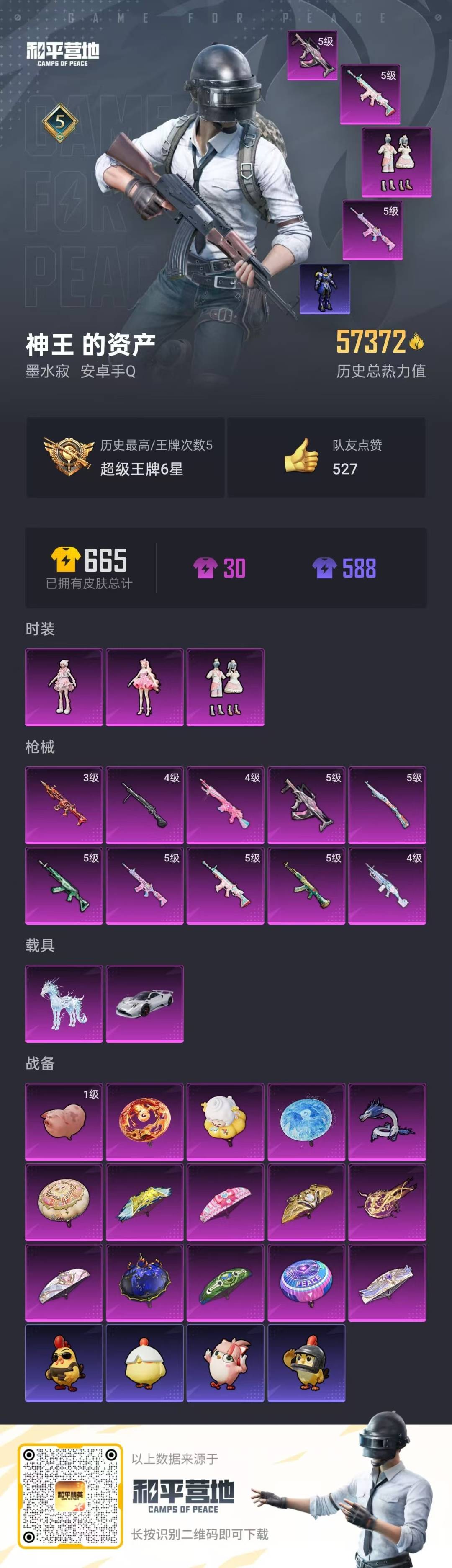 - [12042436]素材身法号【特价急出/详情看图】:苹果 手Q-1神装-1粉装-4特效枪-2粉色飞行器-3.5w热力值-7王牌印记-78套装-102枪皮【红色神装等级】:圣域龙灵-瑞拉(二级)【热门品类】:粉装-雪国幻梦,套装-浪漫天命,套装-胖达团团,套装-暗影哥特,套装-粉红小猪【粉色套装】:粉装-雪国幻梦【粉色枪皮等级】:AKM-梦之光华(五级),Kar98K-圣域龙灵(三级),DP-28-圣堂之誓(四级),DP-28-豹影疾电(二级)【粉色飞行器】:天之羽翼飞行器,圣域金龙飞行器