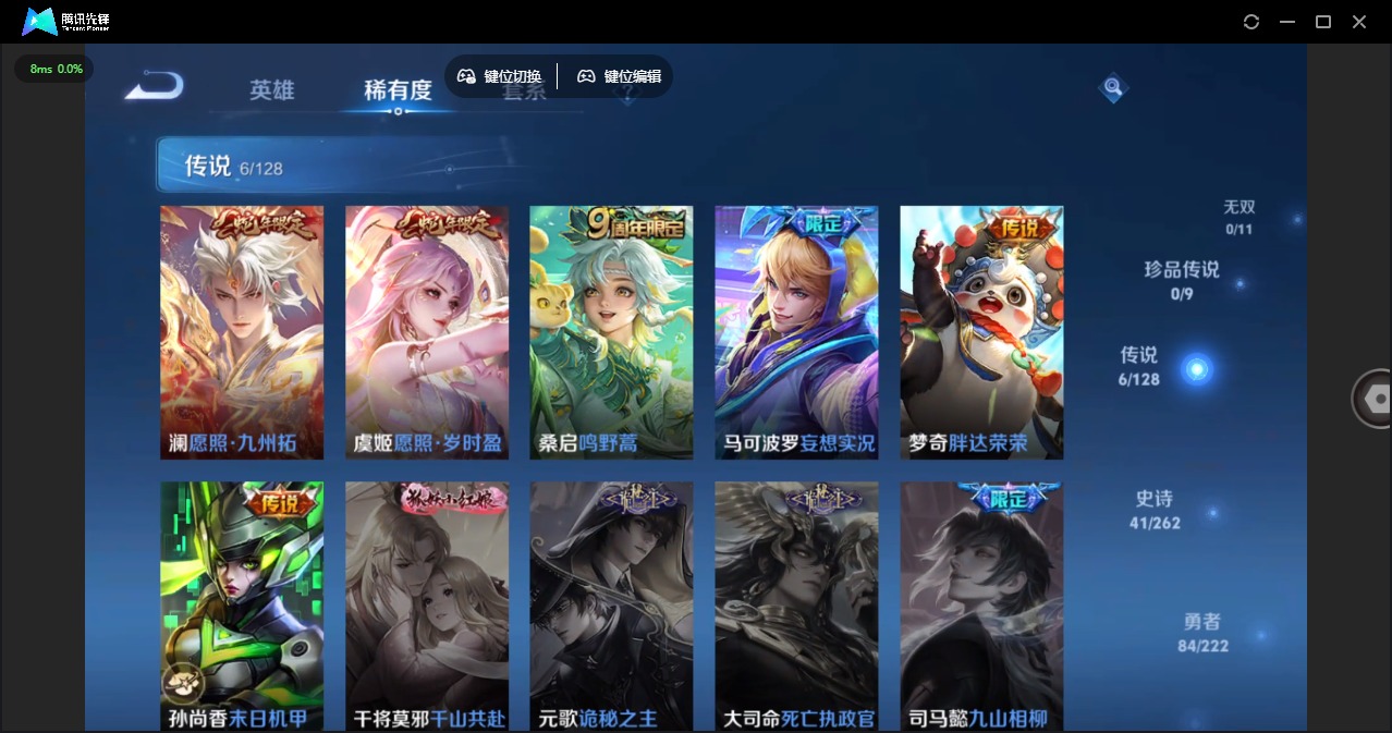 - [11867131]V8 1典藏 1珍品传说 19传说 125英雄 237皮肤 可修改实名 优质装备:杀手不太冷,酷洛米之心,黄金射手座,冠军飞将,云鹰飞将(小将军),猫影幻舞,久胜战神,一念神魔,云霓雀翎,末日机甲-孙尚香(绿蚂蚱),仲夏夜之梦(大飞蛾),飞鸢探春,乞巧织情,超时空战士-狄仁杰,浮生妄,记忆之芯(机甲兔),涂山容容 珍宝阁皮:女武神 限定皮:陌上桑,鸣野蒿,至尊宝,白虎志(电光耗子),凤求凰(白切鸡),凤凰于飞,白鹤梁神女,神威(电光马子),至美·乘鲤谣,遇见飞天,冰锋战神,梁祝,天狼狩猎者,逐梦之星,天狼溯光者,天狼征服者,祈雪灵祝(雪兔子),天狼绘梦者,李小龙,逐梦之光,朱雀志(守约年限),如梦令-嫦娥,大圣娶亲,引擎之心,青春决赛季,冰霜恋舞曲,蜜橘之夏,神奇女侠,玉兔公主 史诗皮:龙之律动,百相守梦-黄忠,遇见神鹿,紫霞仙子,苍穹之光,电玩小子(小书包),白龙吟,黄金分割率,千年之狐,永昼,末日机甲-莱西奥,魅语,无限星赏官,偶像歌手,晚萤,暗夜猫娘,末日机甲-吕布,猫狗日记-孙策,时之恋人-孙尚香,节奏热浪,女仆咖啡,水果甜心,天才门将,星夜王子,功夫厨神,幽灵船长,鬼剑武藏,地狱岩魂,诗语江南,纤云弄巧,繁星吟游(呼啦呼啦),缤纷独角兽,逐浪之夏,水晶猎龙者,曙光守护者,箭羽风息,金属风暴,原初追逐者,圣诞恋歌,鹰眼统帅,黎明之约