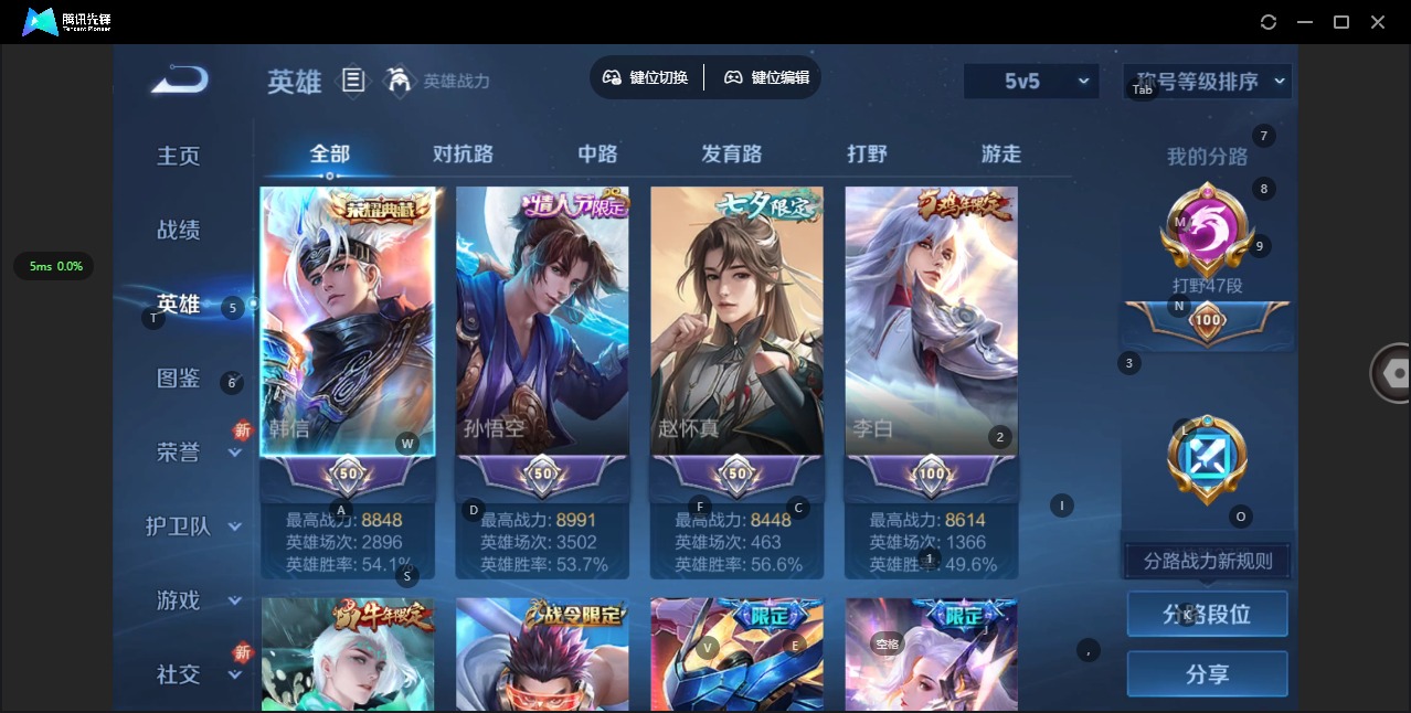 - [12177469]V7 11传说 122英雄 244皮肤 可修改实名 优质装备:炽阳神光,云霓雀翎,零号·赤焰,游龙清影(小青龙),淬星耀世,无双飞将 珍宝阁皮:优雅恋人,蔷薇恋人,女武神 限定皮:白虎志(电光耗子),凤求凰(白切鸡),凤凰于飞,傲雪梅枪,白鹤梁神女,时雨天司(水龙头),飞衡(韩信年限),遇见飞天,高山流水,冰锋战神,武圣,游园惊梦,梁祝,御风骁将(吕布年限),祈雪灵祝(雪兔子),李小龙,如梦令-后羿,霸王别姬-虞姬,孙行者,猪悟能,大圣娶亲,青春决赛季,冰霜恋舞曲 史诗皮:紫霞仙子,苍穹之光,黄金分割率,千年之狐,魅语,冰冠公主,晚萤,猫狗日记-孙策,乱世虎臣,修罗,女仆咖啡,摇滚巨星,水果甜心,天才门将,时之奇旅-安琪拉,德古拉伯爵,幽灵船长,鬼剑武藏,舞动绿茵,地狱岩魂,纤云弄巧,繁星吟游(呼啦呼啦),拒霜思,缤纷独角兽,乘风破浪,水晶猎龙者,曙光守护者,箭羽风息,金属风暴,原初追逐者,圣诞狂欢,圣诞恋歌,鹰眼统帅,黎明之约,未来纪元-赵云