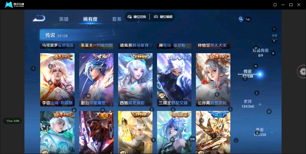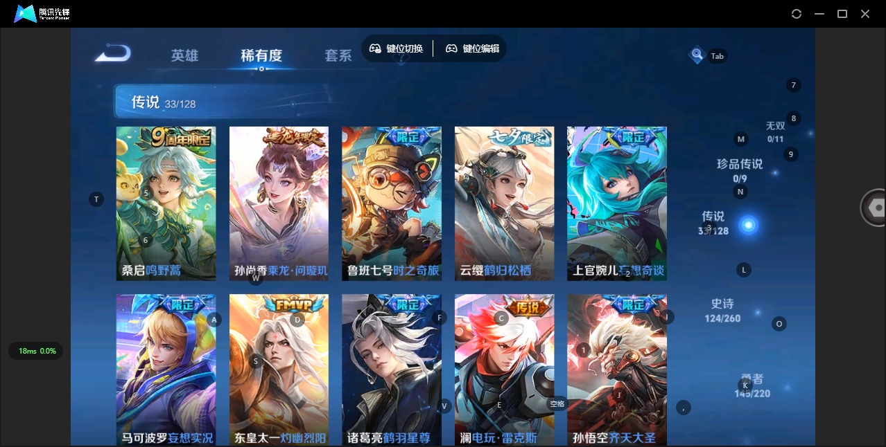 - PX_2108137-Q/至尊星耀/184皮肤/124英雄/0典藏/0珍品无双/0无双/0珍品传说/6传说/45史诗/9稀有英雄 【6 传说皮肤】零号·赤焰 孙悟空,仲夏夜之梦 貂蝉,愿照·九州拓 澜,玄雷天君 嬴政,幻光神枪 云缨,愿照·山河定 司空震, 【45 史诗皮肤】蔬乡物语 鲁班七号,超元猎域 百里玄策,银河之约 李元芳,暗影游猎 马可波罗,妄想食味 姬小满,鬼剑武藏 宫本武藏,迷踪丽影