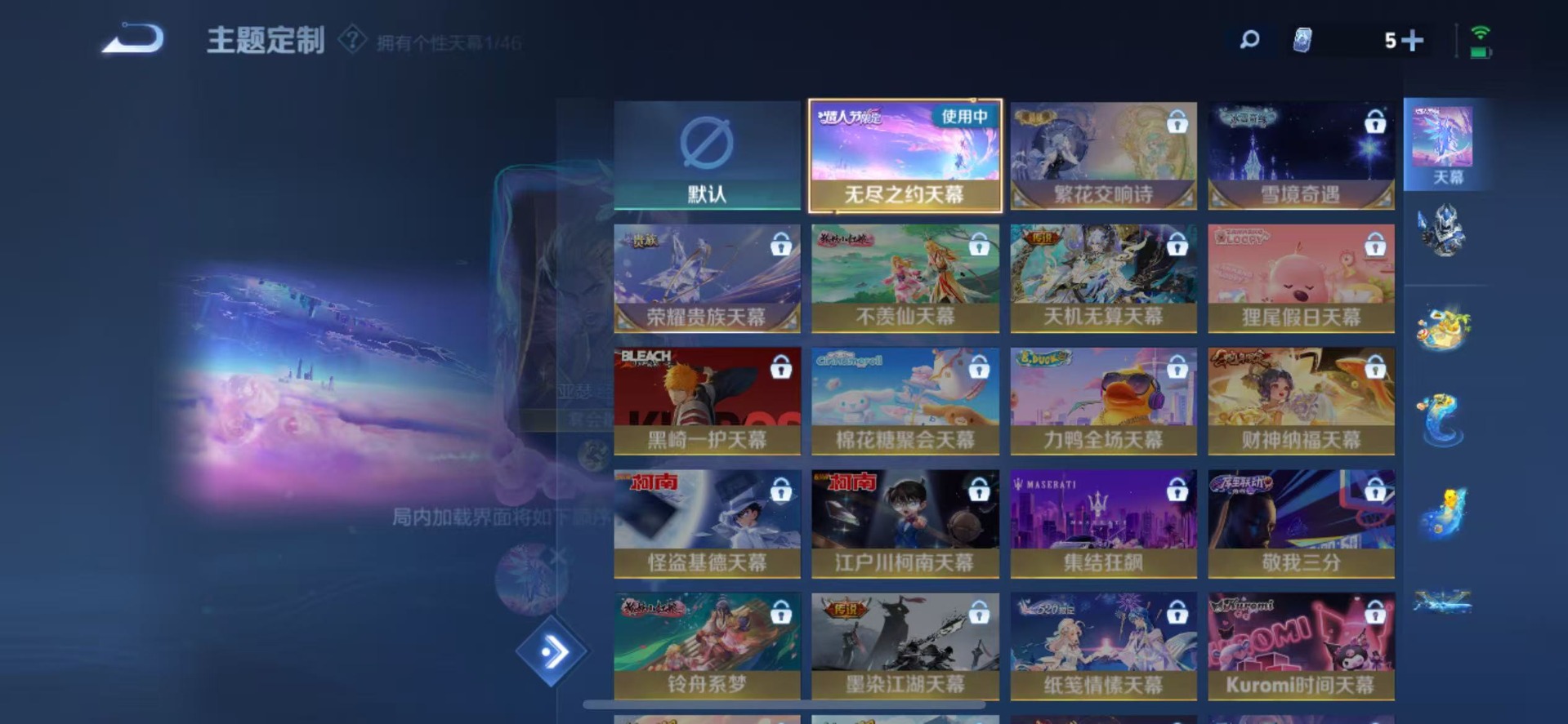 高渐离燃音魔法,刘邦德古拉伯爵,夏侯惇乘风破浪,阿轲节奏热浪,铠曙光守护者,曹操幽灵船长,伽罗箭羽风息,廉颇地狱岩魂,小乔缤纷独角兽,孙尚香时之恋人,孙策猫狗日记,赵怀真器灵·浮梦炉,鲁班七号电玩小子,吕布圣诞狂欢,露娜紫霞仙子,吕布末日机甲,诸葛亮黄金分割率,刘禅电玩·爆裂旋风,刘禅天才门将,刘禅绅士熊喵,宫本武藏鬼剑武藏,公孙离无限星赏官,兰陵王暗隐猎兽者,貂蝉圣诞恋歌,花木兰水晶猎龙者,夏洛特永昼,李白千年之狐,蒙犽龙鼓争鸣,安琪拉心灵骇客,白起星夜王子,亚瑟心灵战警,嬴政摇滚巨星,嬴政暗夜贵公子,程咬金功夫厨神,百里玄策原初追逐者,雅典娜冰冠公主,李元芳逐浪之夏,百里守约特工魅影,墨子龙骑士,墨子金属风暴,娜可露露晚萤,嫦娥拒霜思,橘右京修罗