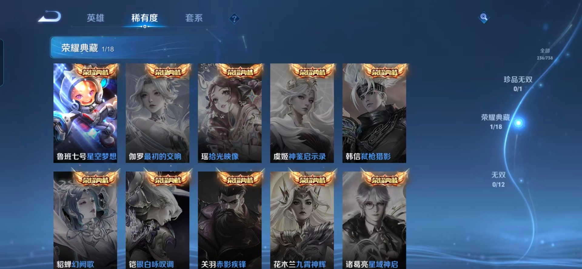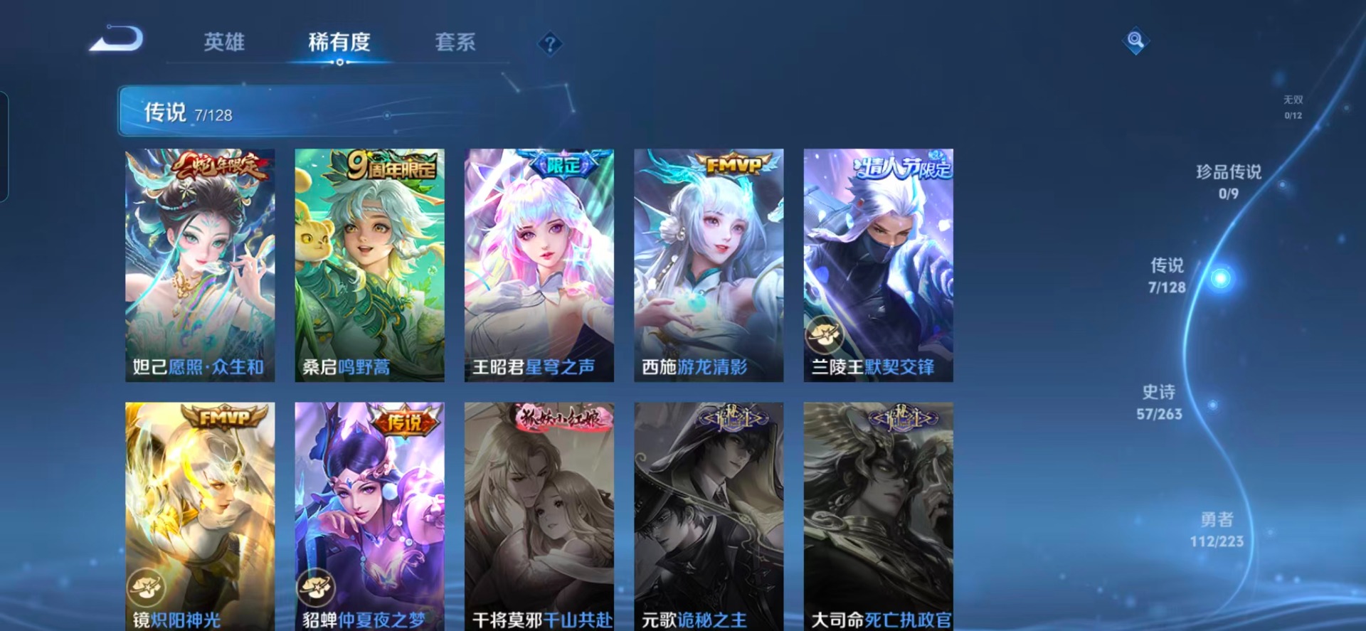 - PX_2054036-安卓Q-V8-296皮肤-1星传说 未来机甲 1典藏 1无双 16传说 1无双 碎月剑心 -1典藏(已兑换) 鸣剑曳影 乘龙问璇玑 逐花归海 凤求凰 幻光神枪 至尊宝 鸣野蒿 启明星使 谪仙醉月 飞衡 幽恒 辉光之辰 朔望之晖 星空之诺 银河之约 淬星耀世 乞巧织情 音你心动女 怒海麟威 原初追逐者 黎明之约 梁祝 狂想玩偶喵 苍穹之光 龙骑士 炽阳神光 猫影幻舞 久胜战神