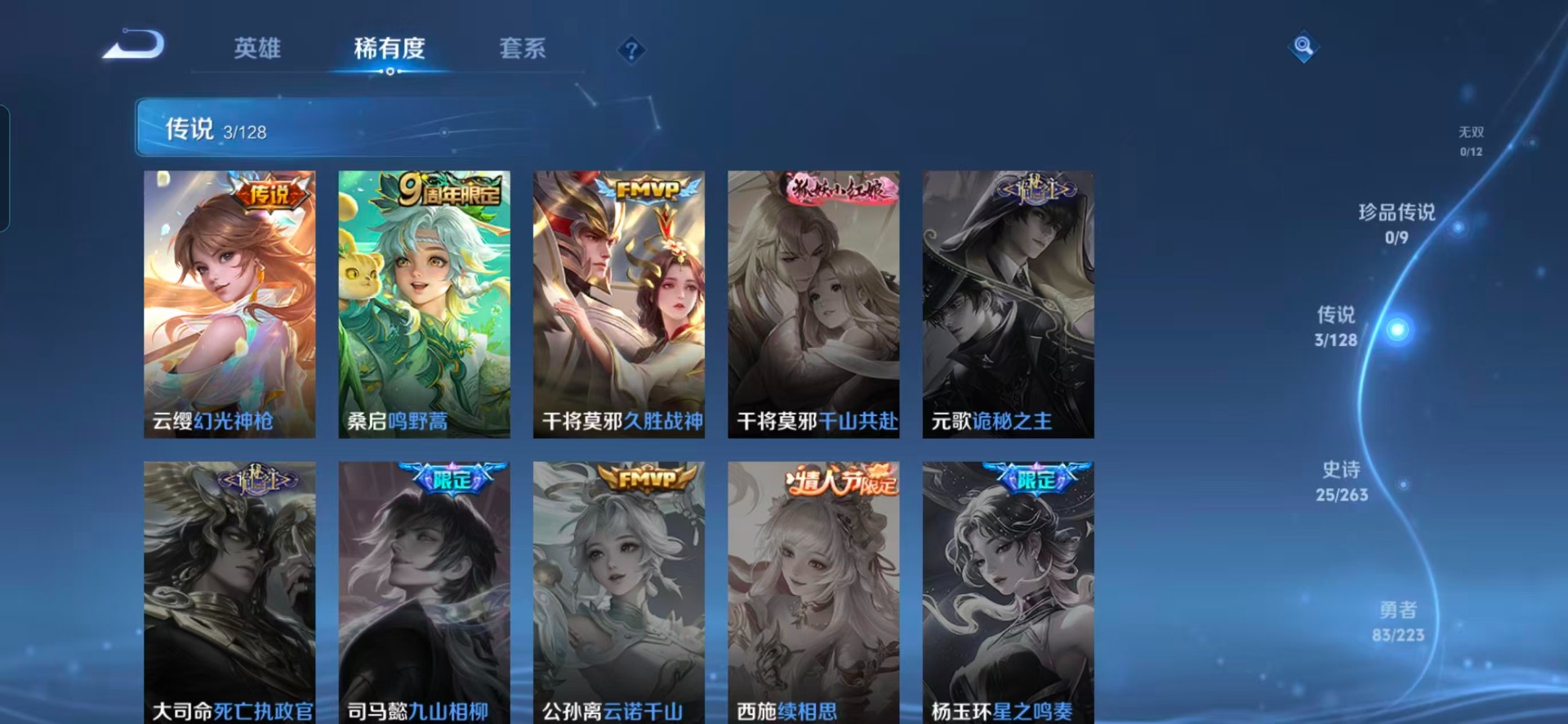 - [13865567]安卓Q-V8-最强王者段位-125英雄-343皮肤-1典藏-0珍品无双-0无双-1珍品传说-18传说-89史诗 【荣耀典藏】:花木兰九霄神辉 【珍品传说】:马可波罗怪盗基德 【传说皮肤】:公孙离云诺千山,云缨幻光神枪,桑启鸣野蒿,孙策乘龙淬吴钩,诸葛亮鹤羽星尊,李信山海炽霜斩,李白诗剑行,马可波罗深海之息,马超无双飞将,周瑜音你心动,李元芳飞鸢探春,诸葛亮时雨天司,镜炽阳神光,虞姬启明星使,干将莫邪久胜战神,梦奇胖达荣荣,貂蝉仲夏夜之梦,孙尚香末日机甲 【限定皮肤】:大乔绒语心约,姜子牙天穹之誓,狄仁杰阴阳师,赵云皇家上将,墨子神迹守卫,嬴政优雅恋人,嬴政白昼王子,钟无艳超时空战士,孙膑天狼运算者,扁鹊奇幻香踪,芈月重明,芈月白晶晶,元歌云间偶戏,元歌无心,夏侯惇朔风刀,甄姬游园惊梦,甄姬落雪兰心,曹操烛龙,典韦穷奇,马可波罗逐梦之星,马可波罗深海之息,狄仁杰魔术师,狄仁杰万华元夜,达摩沙漠行僧,项羽海滩派对,老夫子醍醐杖,老夫子航海奇遇记,安琪拉魔法小厨娘,程咬金演武夺筹,韩信逐梦之影,兰陵王金庭之子,亚瑟潮玩骑士王,牛魔御旌,后羿如梦令,李元芳云中旅人,虞姬启明星使,钟馗驱傩正仪,杨玉环遇见飞天,杨戬潮玩骑兵,女娲朔望之晖,干将莫邪冰霜恋舞曲,雅典娜单词大作战,雅典娜黎明之约,鬼谷子原初探秘者,诸葛亮时雨天司,诸葛亮鹤羽星尊,苏烈千军破阵,百里玄策原初追逐者,百里守约朱雀志,弈星混沌棋,梦奇顽趣,沈梦溪大漠名商,明世隐疑决卦,裴擒虎李小龙,裴擒虎擒涛扼浪,狂铁御狮,米莱狄御霄,云中君纤云弄巧,李信山海炽霜斩,盾山御銮,上官婉儿梁祝,嫦娥拒霜思,嫦娥暖冬兔眠,蒙犽狂想玩偶喵,鲁班大师探海日志,桑启海盐诗旅,暃星界游侠,艾琳流音漫舞,司空震地狱燃心,阿古朵江河有灵,张良古海寻踪,蒙犽百解令,蒙恬荣光圣徽,高渐离燃音魔法,妲己灵卜魔法,鬼谷子天穹祈灯,姬小满妄想食味,大乔乘龙忆丹青,孙策乘龙淬吴钩,沈梦溪龙舞盛年,鲁班七号蔬乡物语,李元芳蔬乡物语,刘邦剑破天穹,程咬金群星魔术团,镜青焰无极,项羽苍威无极,刘备异域游侠,周瑜熔金海岸 【年限皮肤】:百里守约朱雀志,诸葛亮时雨天司,李信山海炽霜斩,大乔乘龙忆丹青,孙策乘龙淬吴钩 【赛季限定】:芈月重明,夏侯惇朔风刀,曹操烛龙,典韦穷奇,狄仁杰万华元夜,达摩沙漠行僧,老夫子醍醐杖,程咬金演武夺筹,兰陵王金庭之子,张良古海寻