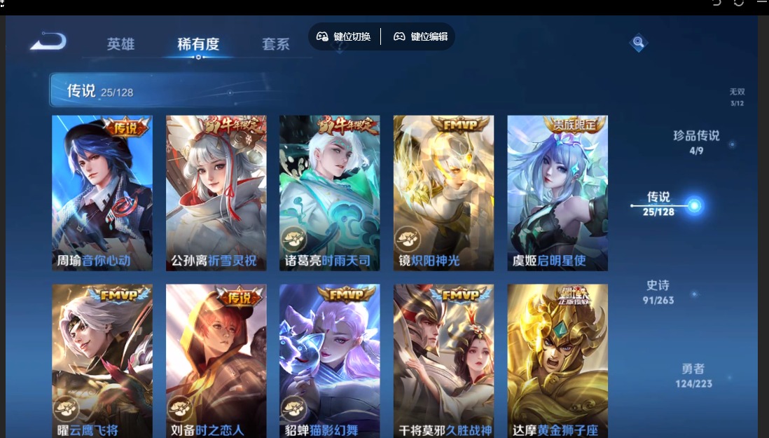 - [11943688]V7 8传说 125英雄 199皮肤 可修改实名 优质装备:黄金狮子座,冠军飞将,久胜战神,炽阳神光,末日机甲-孙尚香(绿蚂蚱),地狱火,仲夏夜之梦(大飞蛾),澜逐花归海 珍宝阁皮:蔷薇恋人 限定皮:至尊宝,神威(电光马子),瑞麟志(木兰年限),青龙志(铠年限),梁祝,天狼狩猎者,逐梦之影,神奇女侠,玉兔公主 史诗皮:百相守梦-黄忠,紫霞仙子,白龙吟,黄金分割率,特工魅影,千年之狐,百解令(蒙犽),冰冠公主,偶像歌手,晚萤,百相守梦(刘备),暗夜猫娘,猫狗日记-孙策,节奏热浪,摇滚巨星,水果甜心,心灵骇客,暗隐猎兽者,幽灵船长,纤云弄巧,繁星吟游(呼啦呼啦),拒霜思,乘风破浪,逐浪之夏,箭羽风息,原初追逐者,圣诞狂欢,圣诞恋歌,鹰眼统帅,魅力维加斯