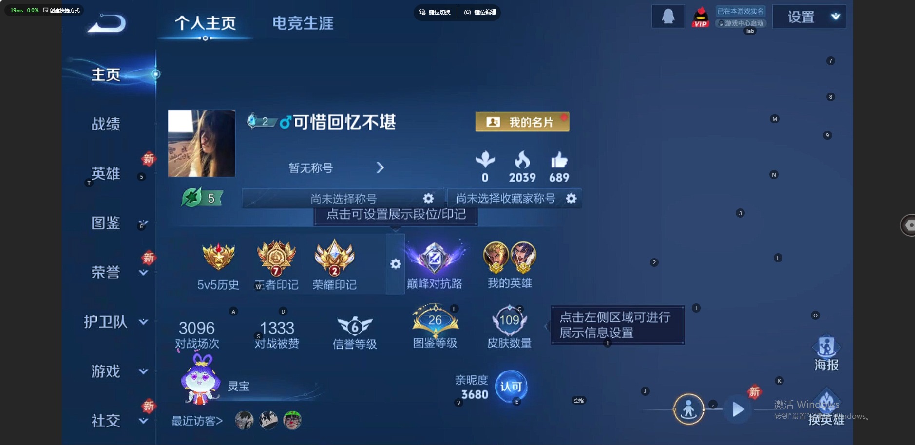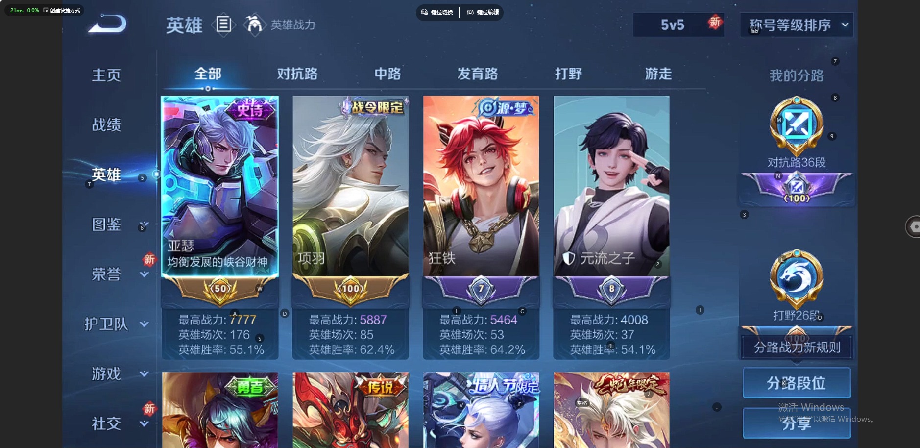 - [9056541]贵族V7 传说皮肤3 史诗皮肤27 皮肤数量144 皮肤价值:75282 英雄115 永恒钻石V