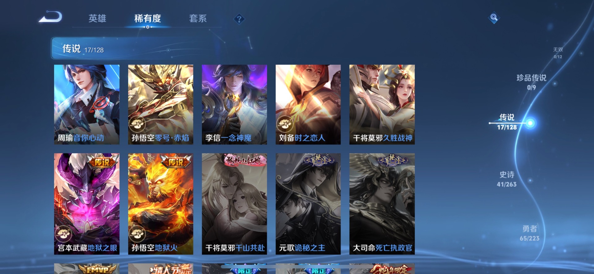 - [11907674]V7 1典藏 6传说 123英雄 199皮肤 可修改实名 优质装备:全息碎影(猴子典藏),黄金狮子座,云霓雀翎,超时空战士-狄仁杰 珍宝阁皮:蔷薇恋人 限定皮:白虎志(电光耗子),凤求凰(白切鸡),梅西,高山流水,五谷丰年,梁祝,天狼狩猎者,天狼征服者,李小龙,逐梦之光,猪悟能,一生所爱,大圣娶亲,天魔缭乱,云端筑梦师,神奇女侠,寅虎·御盾(廉颇年限) 史诗皮:化蝶舞,紫霞仙子,黄金分割率,特工魅影,千年之狐,永昼,蒙恬荣光圣徽,节奏热浪,水果甜心,天才门将,德古拉伯爵,暗隐猎兽者,舞动绿茵,纤云弄巧,繁星吟游(呼啦呼啦),逐浪之夏,水晶猎龙者,金属风暴,原初追逐者,圣诞恋歌,鹰眼统帅,魅力维加斯,寅虎·御盾