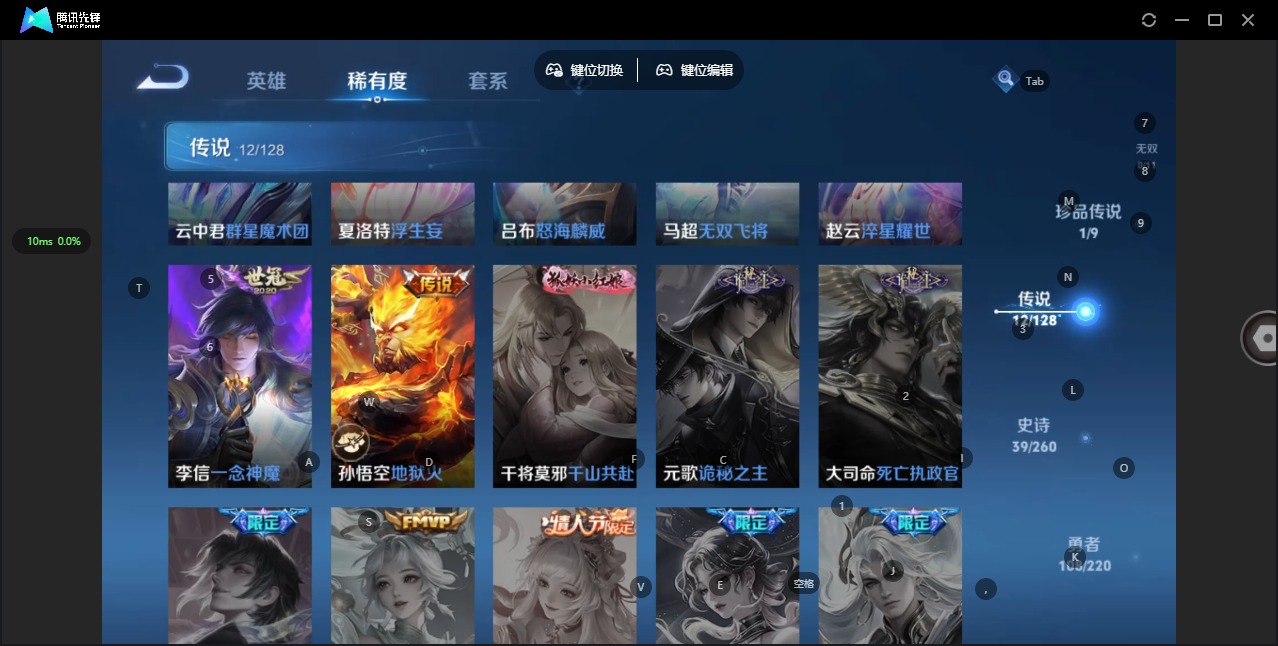 - [11822301]V10 3典藏 1珍品无双 5无双 9珍品传说 70传说 125英雄 464皮肤 可修改实名 优质装备:馥梦繁花,无限飓风号(高达),活力突击,鸣剑·曳影,小乔时之魔女(小乔无双),离恨烟(公孙离无双),雪境奇遇-甄姬,器灵·螭龙剑,天机白泽,江户川柯南,怪盗基德,器灵·落星盏,酷洛米之心,大耳狗之梦,朽木白哉,黑崎一护,黄金狮子座,黄金射手座,冠军飞将,云鹰飞将(小将军),黄金白羊座,久胜战神,炽阳神光,一念神魔,音你心动-小乔,地狱之眼,飞鸢探春,音你心动-周瑜,胖达荣荣,李逍遥,乞巧织情,时之恋人-刘备(电焊工),游龙清影(小青龙),淬星耀世,超时空战士-狄仁杰,遇见胡旋,末日机甲-孙策,花朝如约(花篮子),挚爱之约,挚爱花嫁,无双飞将,碎云,山海·炽霜斩(李信年限),山海·琳琅生(小乔年限),炽翼辉光(娃娃菜牛角包),画中仙,浮生妄,百相守梦(张飞),灼幽烈阳,妄想实况,妄想奇谈,遇见神鼓,大乔-时之奇旅,艾琳觅芳踪,牧神诗旅,玄雷天君,千劫归真,诡秘之主,涂山容容 珍品传说:时之奇旅-孙策,兔狲·蓬尾 传说皮:落雪白狼,死亡执政官,九山相柳,铠冥王哈迪斯,续相思,星之鸣奏,祥瑞亨通,幻光神枪 珍宝阁皮:妄想食味,玩趣恶龙 限定皮:愿照·九州拓(澜年限),愿照·福禄聚(蔡文姬年限),愿照·岁时盈(虞姬年限),愿照·山河定(司空震年限),愿照·众生和(妲己年限),愿照·千秋盛(女娲年限),逐霄战戟,映山客,陌上桑,鸣野蒿,夏侯惇霜北刀,至尊宝,武陵仙君(小桃花),异界灵契(白毛香),傲雪梅枪,补天,寅虎·展翼(孙膑年限),时之彼端,神威(电光马子),影龙天霄,高山流水,匿光决锋者,怒海麟威,五谷丰年,梁祝,天狼溯光者,李小龙,永曜之星,辉光之辰,如梦令-嫦娥,如梦令-后羿,孙行者,猪悟能,一生所爱,青春决赛季,蜜橘之夏,匿光追影者,女儿国国王,寅虎·御盾(廉颇年限),寅虎·瑞焰(虎皮蛋子),寅虎·心曲(虎婆),寅虎·赤拳(老虎年限),时之祈愿-云中君,时之祈愿-瑶(瑶传限),百木心枪,玉兔公主,启示之音,匿光启智者,神器·万象笔,山海·玄木吟(马可年限) 史诗皮:赞萌露比,鸭鸭历险记-刘禅,飞车小橘子,苍鳞隐世,器灵·浮梦炉,糖绘人间,狼魂孤将,绮世丹青,化蝶舞,灵蛊蚀心,星界战将,谪仙醉月,龙之律动,雪豹·霜爪,藏狐·褐绒,布丁狗之誓,小牛鸭,石田雨龙,