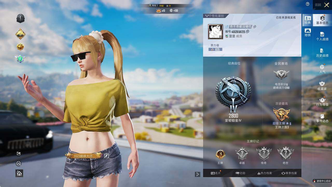 - [11605334]1红装 3粉装 6特效枪 1载具 7印记 可二次 可修改实名 身法装备:都市猎人,暗影哥特(红眼罩) 三级神装:三级辉羽雀灵-初翊 热门装扮:樱桃泡泡,星穹咏叹调,莲影清波,鹰眼刺客,深海小丑鱼,都市猎人 载具:辉羽雀灵自行车 稀有枪皮:AUG-暖羊咩咩,Kar98K-巳巳如意,Mk14精灵梦叶罗丽,MG3-辉羽雀灵,M416五爪金龙,SCAR-L纯梦嫁纱 神级装扮:辉羽雀灵-初翊 七级特效枪:七级SCAR-L-纯梦嫁纱 六级特效枪:六级M416-五爪金龙 五级特效枪:五级Mk14-精灵梦叶罗丽,五级Kar98K-巳巳如意,五级AUG-暖羊咩咩 三级特效枪:三级MG3-辉羽雀灵 紫色装扮:熠彩粉晶,轻风白浪,SS22特训,萌趣咩咩,SS20特训,SS21特训,娇憨猪猪,幻彩翩翩,SS30特训套装,妙红点点,SS23特训,霓虹热舞,SS31特训套装,云朵鹅,彩虹兔,雪绒豹,SS33特训套装,青涩时光,顶瓜瓜,飞驰魅影,SS18特训,音速流光,SS19特训,异彩先驱,瑞龙福将,团圆交子,蓝色运动,迎春赐吉,都市漫游者,空投萌叽,耀眼新星,长空猛禽,冰河战士,龙魂突击队,蝶变,香桃花海,龟仙人,蓝海鲸歌,霓虹极客,龙的传人,魅力单车,麻辣教官,黄色运动,黎明保卫者,黑色伏地魔,暗金炫舞,柠萌假日,冷焰舞者,夏日音浪,甜蜜告白,甜蜜熊情侣,牛气满满,灰色格斗者,炫蓝之夏,热血青春,湖畔霞光,雏菊兔兔,萝兰蝴蝶,SS29特训,银尘,纯真浪花,热情海星,曼妙人鱼,SS28特训,卖崽青蛙,燕燕于飞,暗影哥特(红眼罩),异域银装,鱼渊荷华,巳巳如意,森林游猎者,海琴烟,星途旅人,竞技名士,街头风暴,惊鸿侠骨,SS25特训,神气柴柴,懵萌河马,SS24特训(SS24特训套装),锦衣飞扬,金戈铁马,SS27特训,粉红小猪,浪漫天命,云霞荷露,SS26特训,星渊小夜曲,大橘大利,星影赞美诗,小鸟芋圆,樱梦幻音,粉恋花,蓝冰羽,紫幽梦,SS32特训服(SS32特训套装),春日漫步,绯格组合,恋语绒绒,纯白跃动,智谋强哥,晶辉守护,白辉玉蕊,漫步者,冰冻风暴,光之冒险 优质战备:精灵梦叶罗丽降落伞,江南烟雨降落伞,金丰海韵降落伞,庄周梦蝶降落伞,星途旅人降落伞,辉羽雀灵降落伞,雀灵庇佑飞行器,晶梦幻蝶降落伞,幻海仙踪降落伞,幻彩电音降落伞,智耀战神降落伞,圣域龙灵降落伞,圣域金龙飞行器,飞行