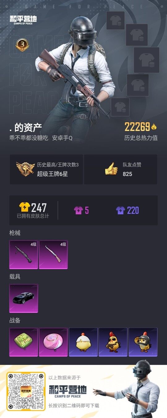 - PX_2113317- 苹果微信-14王牌印记-3粉装-5特效枪-1载具-62976热力值-170套装-203枪皮-7卓越印记-4传奇印记 【3粉装】,幻彩电音,圣堂之誓,绚金战神 【5特效枪】SCAR-L-锦绣绵绵-5级 M416-电玩时刻-5级 M416-女娲灵识-6级 Kar98K-巳巳如意-5级 DP-28-豹影疾电-5级 【9稀有紫装】,都市猎人,派对舞王,Mark.06,奇异狩猎者,