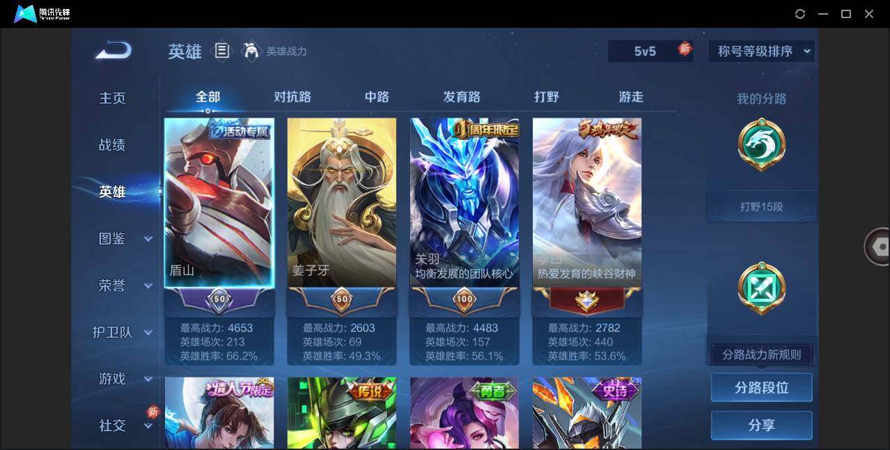 - [11578673]V5 6传说 53英雄 37皮肤 可修改实名 优质装备:黄金射手座,绛天战甲(鸡嘴战神),超时空战士-狄仁杰,音你闪耀(rap皮) 传说皮:幻光神枪 限定皮:愿照·岁时盈(虞姬年限) 史诗皮:女仆咖啡,水果甜心,魅力维加斯