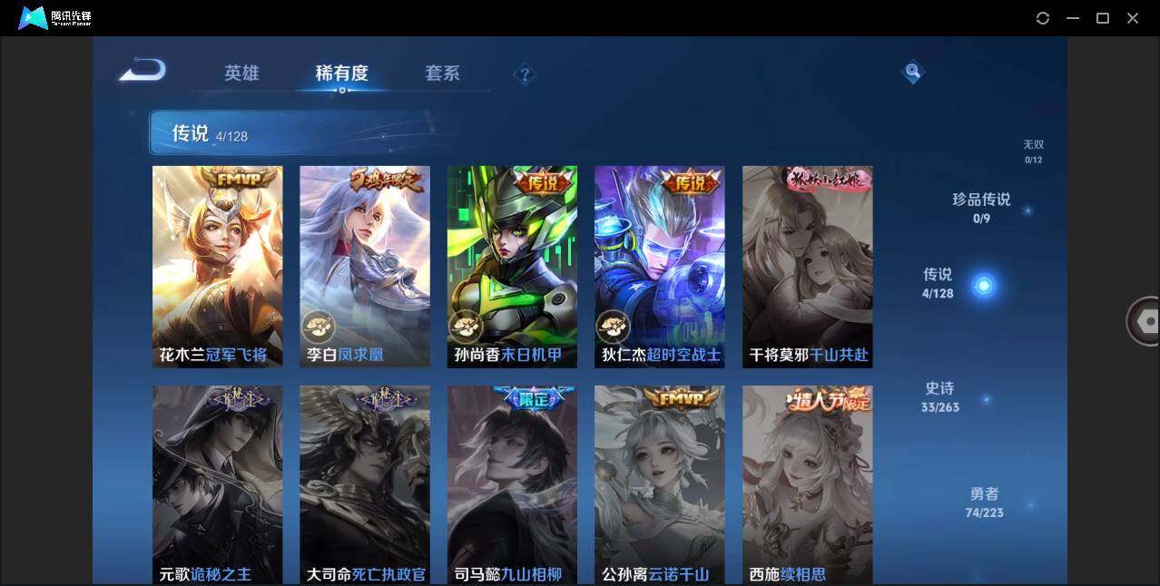 【传说皮肤】:花木兰冠军飞将,李白凤求凰,孙尚香末日机甲,狄仁杰超时空战士