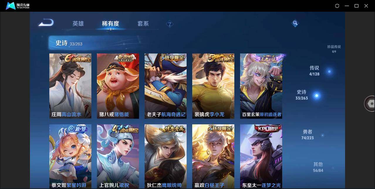 - [11529601]V10 16典藏 6无双 3珍品传说 89传说 125英雄 535皮肤 典藏英雄武则天 可修改实名 优质装备:天鹅之梦(小乔典藏),星空梦想(太空人),倪克斯神谕(宇宙婆娘),无限飓风号(高达),活力突击,杀手不太冷,大秦宣太后,鸣剑·曳影,全息碎影(猴子典藏),星域神启(倪克斯贼亮),九霄神辉(木兰典藏),赤影疾锋,银白咏叹调(倪克斯侍卫),幻阙歌(貂蝉典藏),真我赫兹(瑶)(瑶无双),神器·明辉仪,青丘·九尾(妲己无双),小乔时之魔女(小乔无双),拾光映像(瑶典藏),雪境奇遇-甄姬,器灵·螭龙剑,最初的交响(伽罗典藏),器灵·落星盏,黄金狮子座,黄金射手座,冠军飞将,云鹰飞将(小将军),绛天战甲(鸡嘴战神),黄金白羊座,猫影幻舞,久胜战神,炽阳神光,一念神魔,云霓雀翎,末日机甲-孙尚香(绿蚂蚱),地狱火,仲夏夜之梦(大飞蛾),音你心动-小乔,零号·赤焰,海洋之心,地狱之眼,飞鸢探春,音你心动-周瑜,胖达荣荣,李逍遥,乞巧织情,时之恋人-刘备(电焊工),游龙清影(小青龙),淬星耀世,超时空战士-狄仁杰,遇见胡旋,末日机甲-孙策,花朝如约(花篮子),挚爱之约,挚爱花嫁,无双飞将,音你闪耀(rap皮),碎云,天秀幻梦,神器·狴犴令,神器·明辉仪,山海·炽霜斩(李信年限),山海·琳琅生(小乔年限),山海·苍雷引(电光曜子),炽翼辉光(娃娃菜牛角包),燃星之曲,画中仙,浮生妄,青丘·九尾,百相守梦(张飞),追逃游戏(亚瑟),灼幽烈阳,艾琳觅芳踪,玄雷天君,千劫归真 珍品传说:时之奇旅-孙策,兔狲·蓬尾 传说皮:典韦战鼓燎原,续相思,星之鸣奏,祥瑞亨通,幻光神枪 珍宝阁皮:万物之道,蔷薇恋人,玩趣恶龙 限定皮:愿照·九州拓(澜年限),愿照·福禄聚(蔡文姬年限),愿照·岁时盈(虞姬年限),愿照·山河定(司空震年限),愿照·众生和(妲己年限),愿照·千秋盛(女娲年限),至尊宝,白虎志(电光耗子),凤求凰(白切鸡),凤凰于飞,太华(伽罗年限),武陵仙君(小桃花),异界灵契(白毛香),傲雪梅枪,补天,寅虎·展翼(孙膑年限),前尘镜,星穹之声,绯月行,白鹤梁神女,白晶晶,时雨天司(水龙头),神威(电光马子),飞衡(韩信年限),玄嵩(庄周年限),山海·碧波行(瑶年限),无限倾心-项羽,瑞麟志(木兰年限),至美·乘鲤谣,影龙天霄,高山流水,诗剑行,无限倾心-虞姬,齐天大圣,匿光决锋者