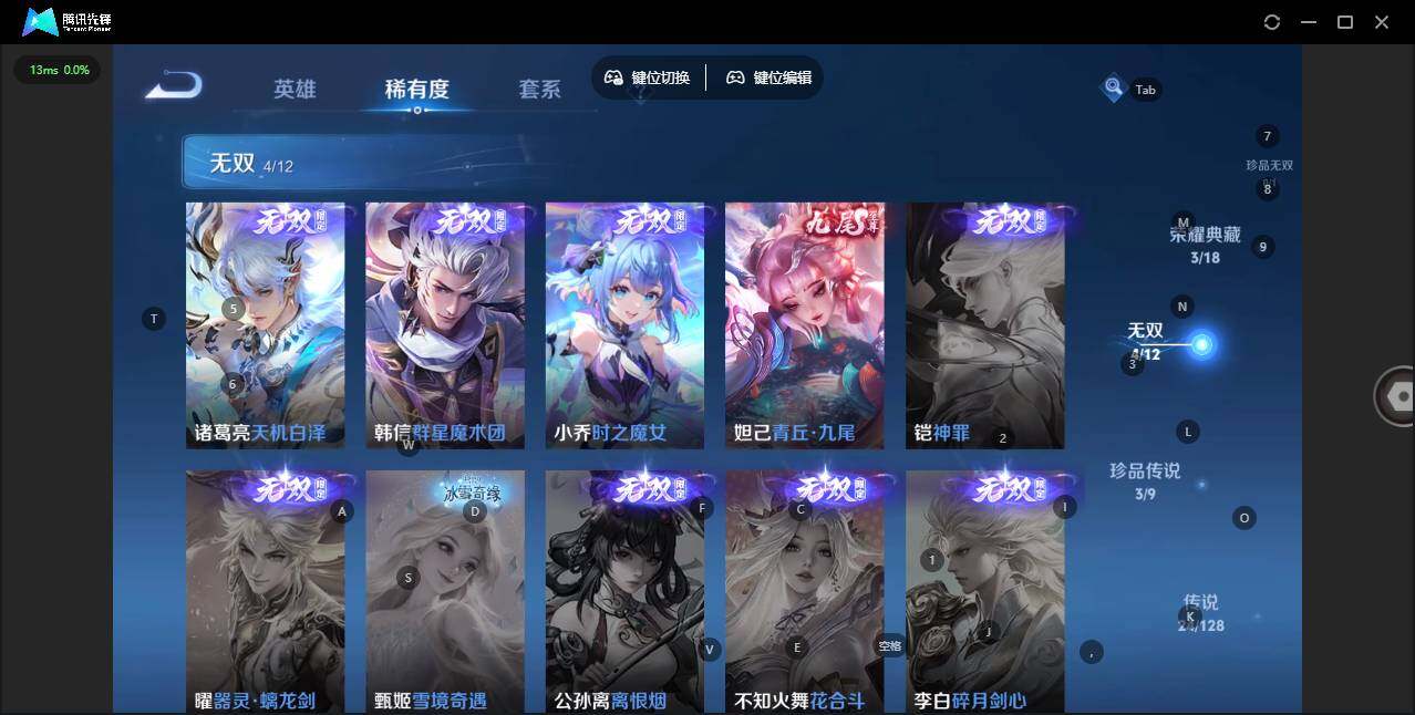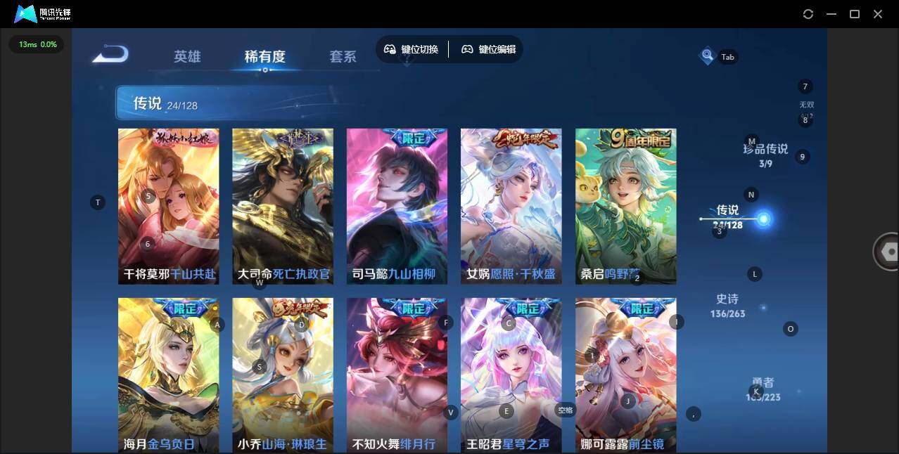 - [11547368]V8 1典藏 20传说 124英雄 304皮肤 可修改实名 优质装备:鸣剑·曳影,黄金狮子座,久胜战神,胖达荣荣,时之恋人-刘备(电焊工),无双飞将,碎云,山海·炽霜斩(李信年限),灼幽烈阳,妄想实况,惊梅引,永恒水手月亮,夜礼服假面,琥珀纪元马超,黄金天蝎座 传说皮:乘龙·铭钟鼎(赵云年限) 珍宝阁皮:妄想食味,优雅恋人 限定皮:愿照·岁时盈(虞姬年限),鸣野蒿,补天,时雨天司(水龙头),飞衡(韩信年限),高山流水,五谷丰年,青龙志(铠年限),游园惊梦,梁祝,岱宗(典韦年限),李小龙,辉光之辰,如梦令-后羿,大圣娶亲,山海·玄木吟(马可年限) 史诗皮:化蝶舞,星界特工,星界战将,茶境仙,蒙犽顽岩魄,琥珀纪元伽罗,百相守梦-百里守约,百相守梦-黄忠,紫霞仙子,苍穹之光,白龙吟,黄金分割率,特工魅影,千年之狐,永昼,百相守梦(刘备),电玩·爆裂旋风,真我赫兹(百里守约),鹤归松栖(赵怀真),江河有灵,百解令(蒙犽),高渐离燃音魔法,蒙恬荣光圣徽,偶像歌手,晚萤,末日机甲-吕布,猫狗日记-孙策,乱世虎臣,节奏热浪,摇滚巨星,水果甜心,天才门将,星夜王子,心灵骇客,功夫厨神,德古拉伯爵,暗隐猎兽者,幽灵船长,鬼剑武藏,心灵战警,乐园奇幻夜,舞动绿茵,地狱岩魂,拒霜思,缤纷独角兽,乘风破浪,逐浪之夏,月团寄思,水晶猎龙者,曙光守护者,箭羽风息,金属风暴,原初追逐者,圣诞狂欢,圣诞恋歌,鹰眼统帅,魅力维加斯,黎明之约,无心,未来纪元-赵云