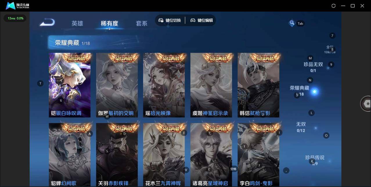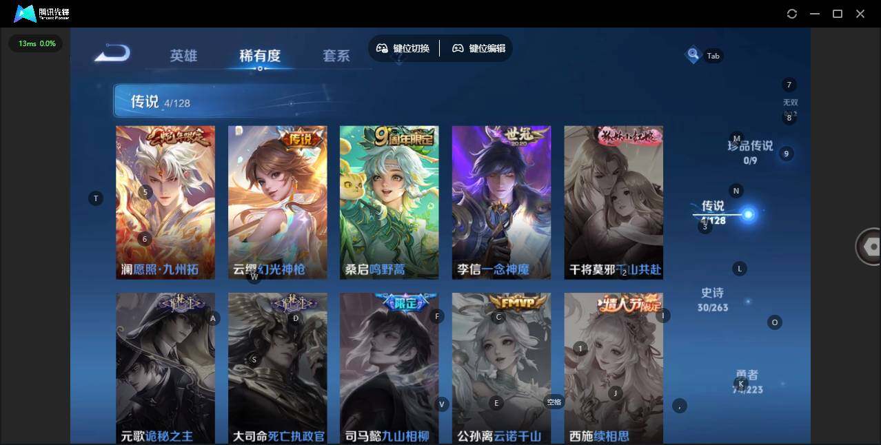 - [11910256]V8 1典藏 1无双 24传说 125英雄 224皮肤 可修改实名 优质装备:鸣剑·曳影,器灵·螭龙剑,黄金射手座,冠军飞将,云鹰飞将(小将军),一念神魔,仲夏夜之梦(大飞蛾),零号·赤焰,地狱之眼,时之恋人-刘备(电焊工),淬星耀世,末日机甲-孙策,霜月吟,澜逐花归海,云中君群星魔术团,涂山容容 传说皮:典韦战鼓燎原,死亡执政官,祥瑞亨通 珍宝阁皮:妄想食味,胡桃夹子,女武神 限定皮:愿照·九州拓(澜年限),逐霄战戟,鸣野蒿,至尊宝,补天,高山流水,诗剑行,怒海麟威,五谷丰年,游园惊梦,梁祝,李小龙,孙行者,无尽星芒,枫霜尽 史诗皮:赞萌露比,鸭鸭历险记-刘禅,瑰影绮梦,化蝶舞,谪仙醉月,龙之律动,破空之剑,蔬乡物语(鲁班七号),星界特工,织梦人,紫霞仙子,电玩小子(小书包),白龙吟,黄金分割率,特工魅影,千年之狐,江河有灵,魅语,百解令(蒙犽),冰冠公主,偶像歌手,末日机甲-吕布,女仆咖啡,摇滚巨星,水果甜心,心灵骇客,时之奇旅-安琪拉,功夫厨神,德古拉伯爵,暗隐猎兽者,幽灵船长,鬼剑武藏,地狱岩魂,纤云弄巧,繁星吟游(呼啦呼啦),拒霜思,乘风破浪,水晶猎龙者,曙光守护者,金属风暴,原初追逐者,圣诞狂欢,鹰眼统帅,魅力维加斯,赏金猎手,无心,未来纪元-赵云