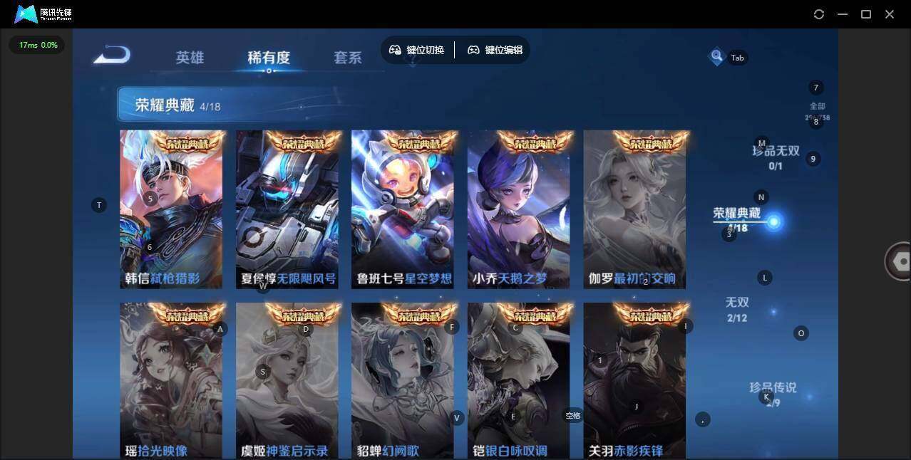 - PX_2104939-Q/至尊星耀/195皮肤/124英雄/1典藏/0珍品无双/0无双/2珍品传说/17传说/52史诗/8稀有英雄 【2 珍品传说】大耳狗之梦 瑶,江户川柯南 鲁班七号, 【1 典藏皮肤】鸣剑·曳影 李白, 【17 传说皮肤】枫霜尽 橘右京,逐花归海 澜,无双飞将 马超,云鹰飞将 曜,炽阳神光 镜,霜月吟 露娜,时之恋人 刘备,战鼓燎原 典韦,愿照·九州拓 澜,愿照·众生和 妲己,