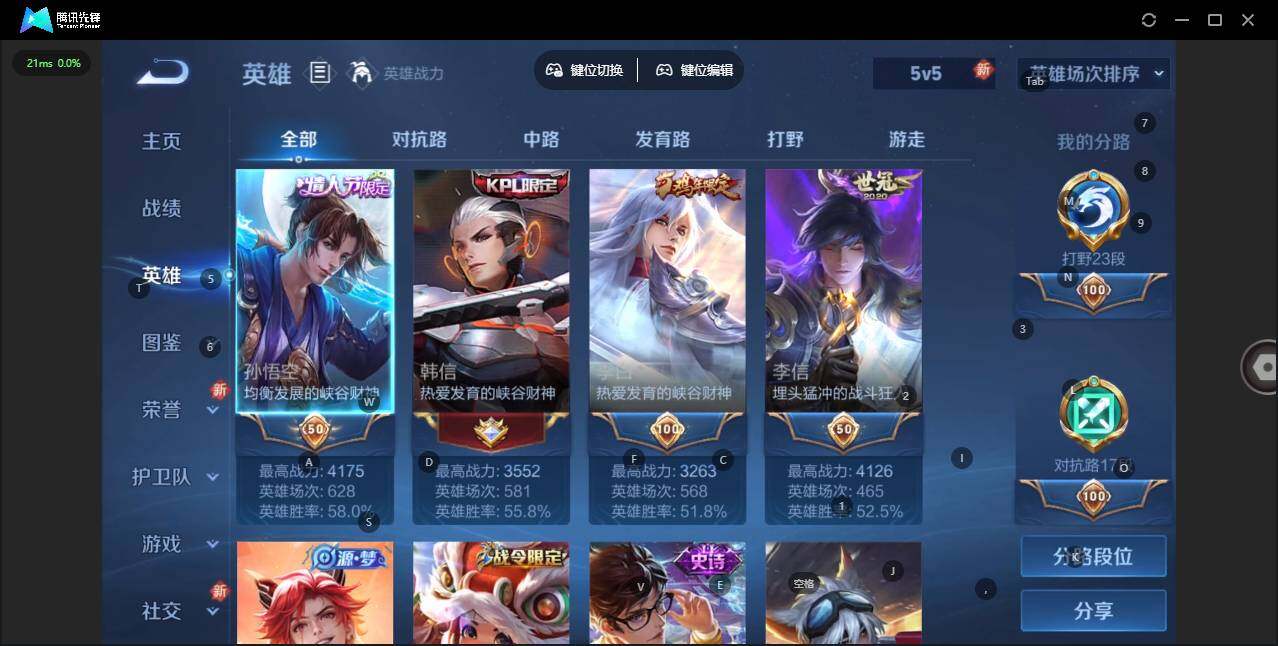 - [10965848]V7 5传说 124英雄 260皮肤 可修改实名 传说皮:黄金白羊座,仲夏夜之梦(大飞蛾),云鹰飞将(小将军) 珍宝阁皮:优雅恋人,蔷薇恋人 限定皮:鸣野蒿,至尊宝,凤求凰(白切鸡),飞衡(韩信年限),高山流水,五谷丰年,梁祝,天狼绘梦者,李小龙,朱雀志(守约年限),孙行者,大圣娶亲,冰霜恋舞曲,乒乒小将 史诗皮:星界战将,龙之律动,石田雨龙,紫霞仙子,电玩小子(小书包),白龙吟,黄金分割率,特工魅影,千年之狐,冰冠公主,江河有灵,蒙恬荣光圣徽,暗夜猫娘,龙骑士(小龙虾),猫狗日记-孙策,乱世虎臣,节奏热浪,摇滚巨星,水果甜心,绅士熊喵,天才门将,星夜王子,心灵骇客,功夫厨神,德古拉伯爵,暗隐猎兽者,幽灵船长,鬼剑武藏,舞动绿茵,地狱岩魂,纤云弄巧,拒霜思,缤纷独角兽,乘风破浪,逐浪之夏,水晶猎龙者,曙光守护者,金属风暴,原初追逐者,圣诞狂欢,圣诞恋歌,鹰眼统帅,暗夜贵公子,魅力维加斯,黎明之约,赏金猎手,无心