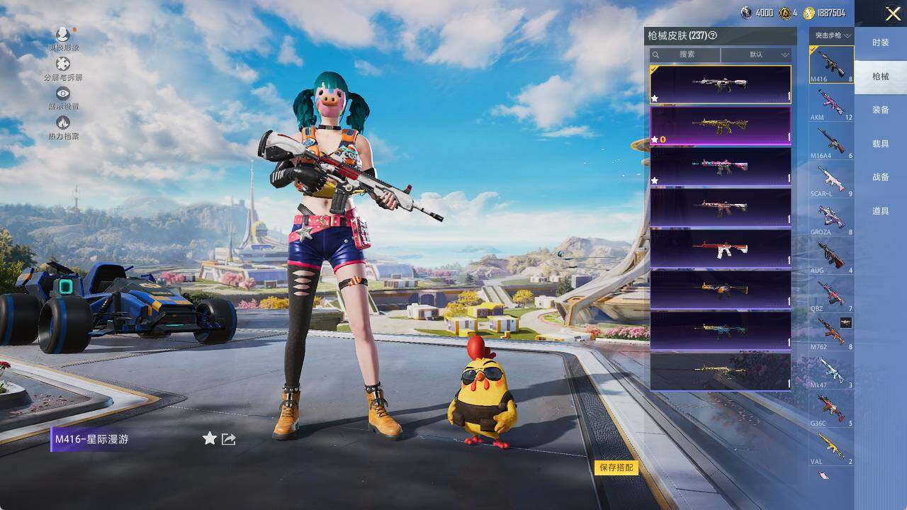 AKM-炫紫旋律,M416-五爪金龙,Kar98K-巳巳如意,Mini14-龙虾霸霸