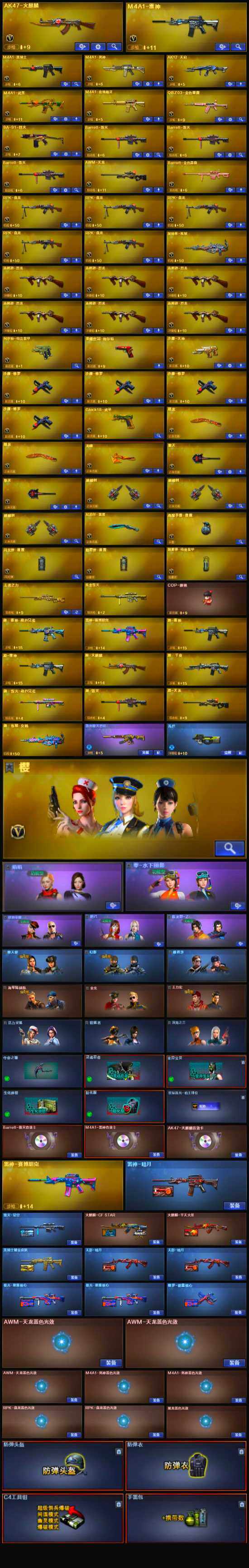 【英雄级武器】:柯尔特-电竞装甲,M4A1-武圣,Glock18-武圣,荣耀世冠-柯尔特,QBZ03-金色蔷薇,M4A1-雷神,M4A1-玫瑰精灵,M4A1-黑骑士,M4A1-死神,RPK-盘龙*5,加特林-炼狱,汤姆逊-烈龙*6,AK47-火麒麟,AK12-天启,AWM-天龙,Barrett-毁灭*3,沙鹰-天神,沙鹰-修罗*4,麒麟刺*3,擎天*2,龙啸,屠龙*2