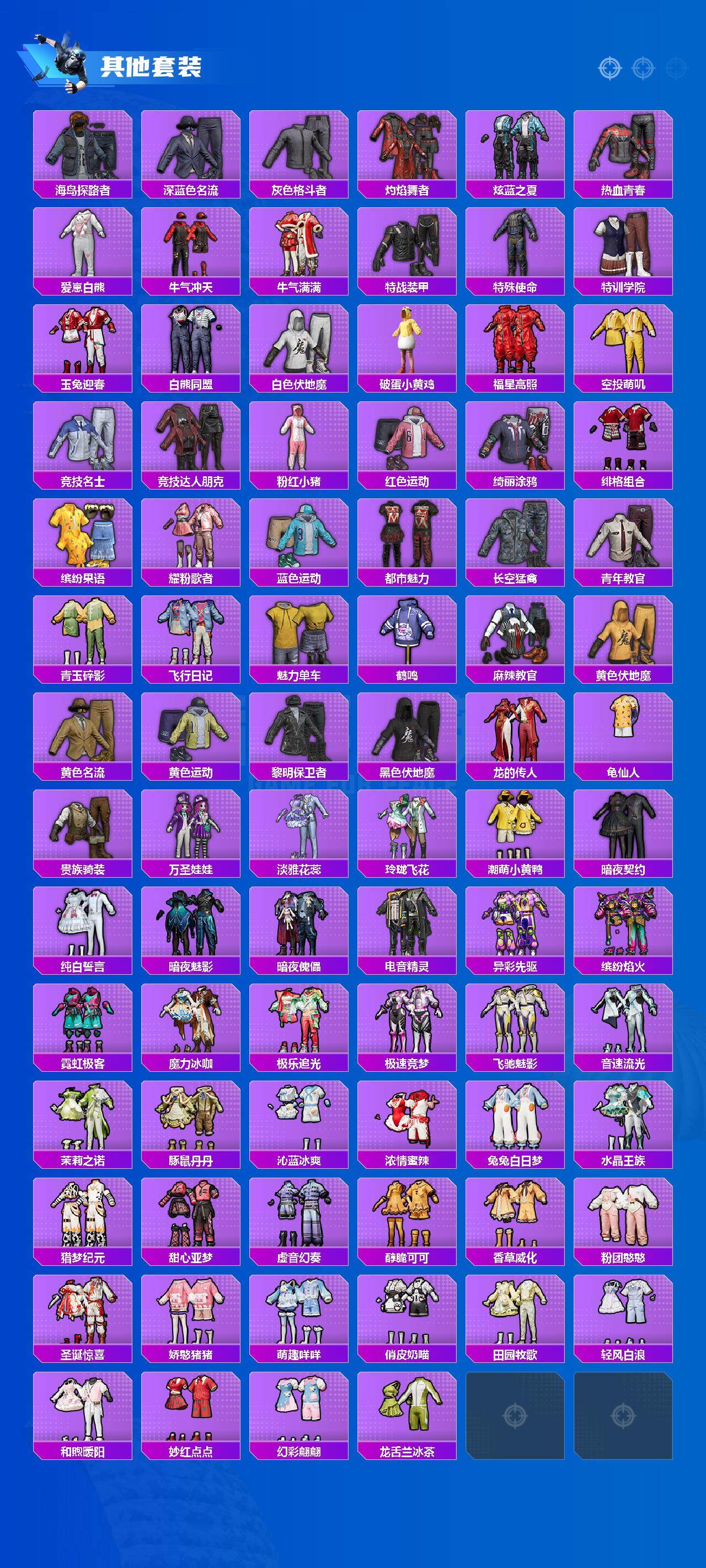 【粉色套装】:粉装-粉色回忆,粉装-宝贝奶油派,粉装-蝶舞迷情,粉装-甜蜜誓约,粉装-冰霜白皇,粉装-童趣迷兔,粉装-炙焰红王,粉装-蜜桃特工,粉装-精灵娃娃,粉装-酣梦娃娃,粉装-海盐物语,粉装-恐龙拽拽,粉装-星夜魔法师,角色-烟云彩露,角色-荧海星豚,角色-奇迹舞步 美雪